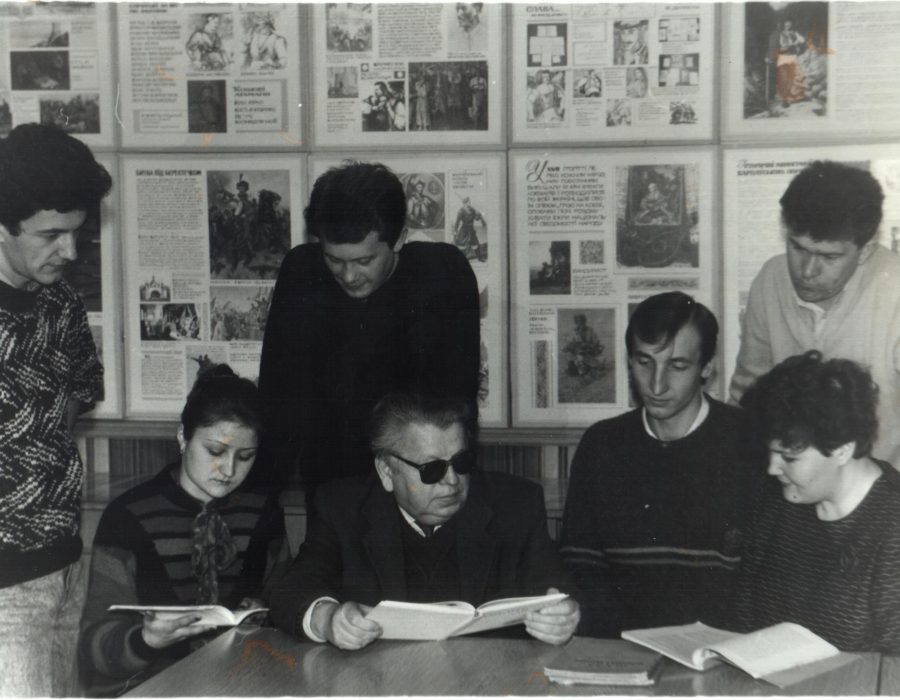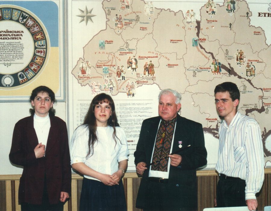 Богдан Гаврилів зі студентами-істориками в кабінеті історії України. 1995 р.