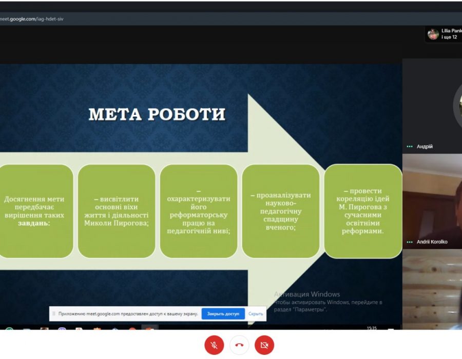 15 травня відбувся онлайн-захист курсових робіт студентів ІІІ курсу спеціальностей 014 Середня освіта (Історія) і 032 Історія та археологія ОР «Бакалавр» (денна форма навчання). У своїх виступах під час захисту результатів своїх кваліфікаційних робіт з історії України та методики викладання психолого-педагогічних дисциплін більшість студентів звернули увагу на аргументованість вибору теми дослідження та її розкриття, підтвердили вільне володіння матеріалом, окреслили ступінь самостійності у виконанні роботи, визначили особистий внесок (наукову новизну) автора в роботу. Підготувавши візуалізовані презентації результатів своїх досліджень, студенти вміло вели себе під час захисту своїх робіт, показали чіткість, логічність, послідовність, лаконічність викладеного матеріалу. Разом з тим, спостерігалася компетентність, вичерпність відповідей молодих дослідників на запитання членів комісії, викладачів кафедри історії України і методики викладання історії, та своїх колег-студентів, а також етикет та культура спілкування учасників, активна кваліфікована участь у дискусії.