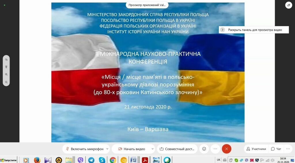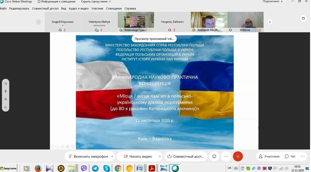 21 листопада 2020 р. доцент кафедри історії України і методики викладання історії Андрій Королько взяв участь у ІІ Міжнародної науково-практичної онлайн конференції «Місця / місце пам’яті в польсько-українському діалозі порозуміння (до 80-х роковин Катинського злочину)», проведена за допомогою сервісу організації конференцій Cisco Webex Meeting. Організаторами цього заходу виступили науковці та дипломати Міністерства закордонних справ Республіки Польщі, Посольства Республіки Польща в Україні, Федерації польських організацій в Україні (ФОПвУ), Інституту історії України НАН України.