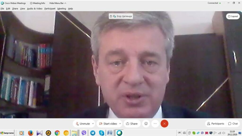 Далі ректор університету Ігор Цепенда виступив з доповіддю з основного питання порядку денного онлайн-конференції трудового колективу щодо підсумків роботи університету за 2020 рік.