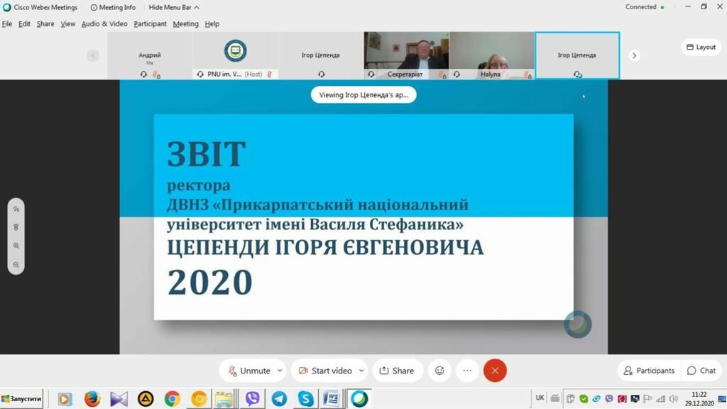 Учасники онлайн-конференції виступили з обговореннями звіту та одноголосно схвалили доповідь ректора за підсумками діяльності університету в 2020 році.