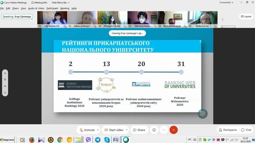 В першу чергу ректор зверну увагу на міжнародні рейтингові позиції Прикарпатського університету. За його словами саме за такими показниками наш університет починають оцінювати ті партнери, які хочуть співпрацювати. Ректор відзначив високе – 2 місце – ПНУ у міжнародному рейтингу SciMago Institutions Rankings 2020. Цей рейтинг включає журнали та наукові показники, розроблені на основі інформації, що міститься в базі даних Scopus.