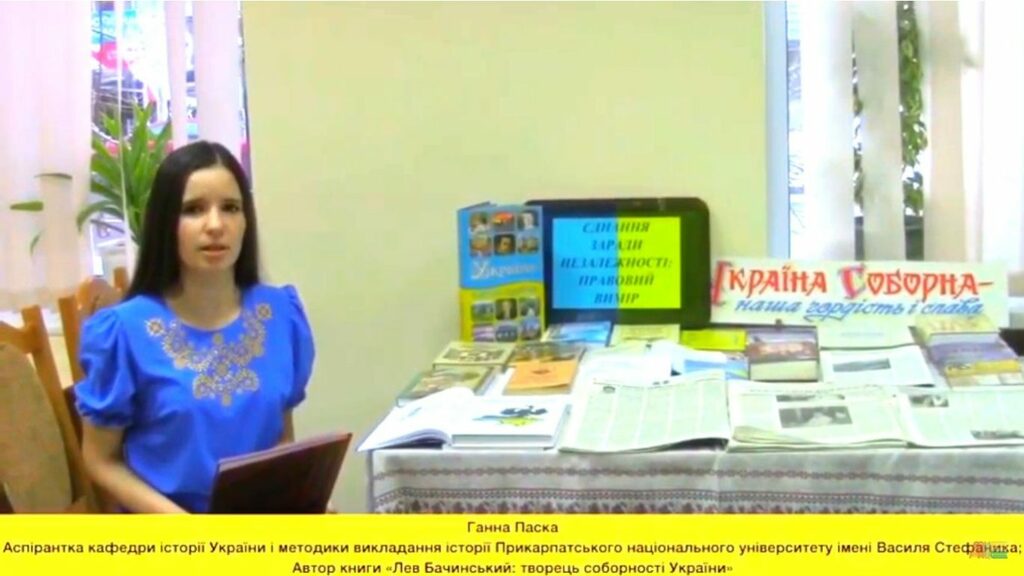 21 січня 2021 р. у читальному залі міської центральної бібліотеки (вул. Пилипа Орлика, 5) Департаменту культури Івано-Франківської міської ради в рамках засідання правового клубу «Діалог» (керівник клубу Майя Шегда) для on line користувачів та шанувальників історії був презентований відеоматеріал «Єднання заради незалежності: правовий вимір», присвячений Дню соборності України. На обговорення даної теми були запрошені член Національної спілки краєзнавців України, кандидат історичних наук, доцент кафедри історії України і методики викладання історії Олег Єгрешій та аспірантка кафедри історії України і методики викладання історії Ганна Паска.