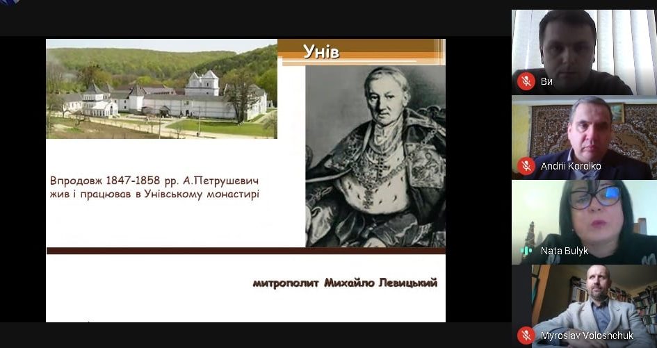 21 січня 2020 р. на базі Національного заповідника «Давній Галич» при співпраці з Центром медієвістичних студій Прикарпатського національного університету імені Василя Стефаника відбувся науковий онлайн-семінар «Галич і Галицька земля у дослідженнях о. Антонія Петрушевича (1821–1913)», проведений за допомогою сервісу організації конференцій Google Meet. Саме трьома днями раніше, 18 січня, виповнилося 200 років від дня народження Антонія Степановича Петрушевича – однієї з найпомітніших постатей українського національно-культурного руху Галичини другої половини XIX ст., громадського і релігійного діяча, ученого широкого гуманітарного спрямування, знаного бібліофіла. Дієвий учасник національного відродження 1848–49 рр., свідок «весни народів», співзасновник Головної Руської Ради 1848 р., учасник Собору Руських учених, А. С. Петрушевич активно співпрацював з національно-культурними товариствами, тричі був обраний послом до Галицького Сейму (1861–1877), послом до Австрійського парламенту (1873–1878).