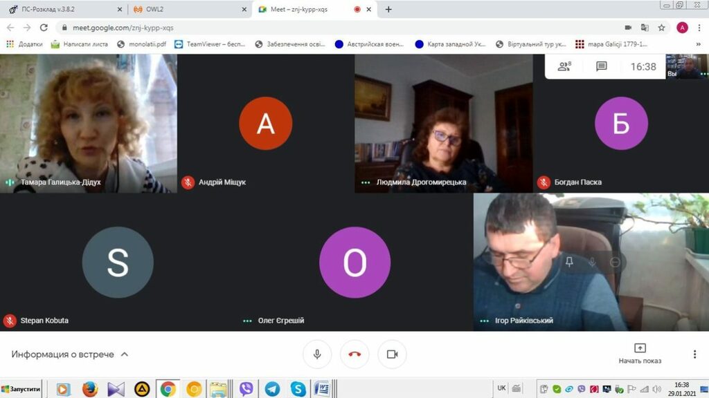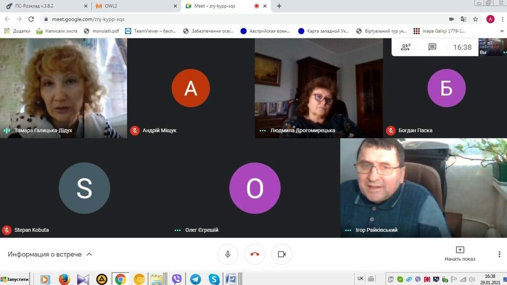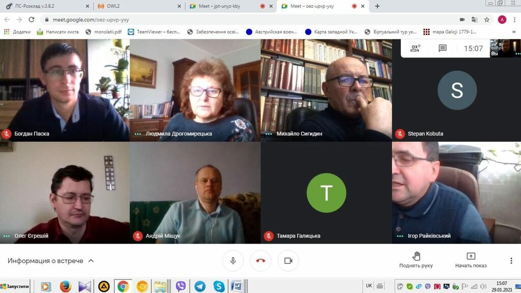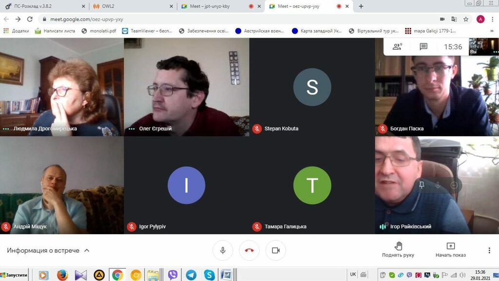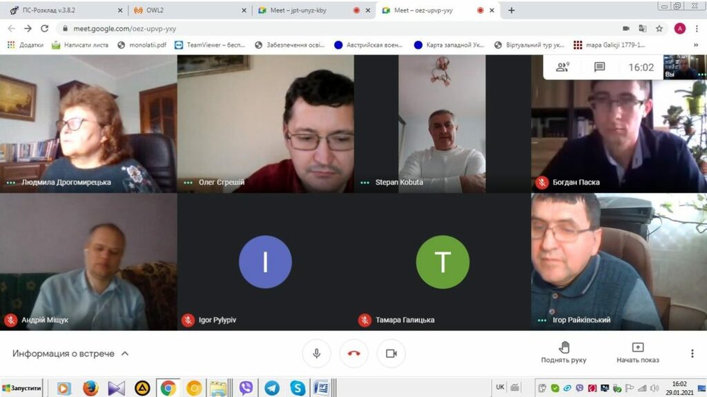 29 січня 2021 р. відбулося перше у новому календарному році засідання кафедри історії України і методики викладання історії. На порядку денному були такі питання: про рейтинг діяльності кафедри історії України і методики викладання історії за 2020 р. і завдання викладачів з метою його підвищення в поточному році; про підсумки зимової заліково-екзаменаційної сесії 2020–2021 н. р. на факультеті, неісторичних факультетах та навчально-наукових інститутах університету; про підготовку до проходження виробничої (педагогічної) практики студентів IV курсу; затвердження програмових вимог та оновлення банку дворівневих тестових завдань базового та основного рівня для іспиту з історії України для вступників на ОР «Магістр» спеціальності 014 «Середня освіта (Історія)»; затвердження програмових вимог та оновлення банку дворівневих тестових завдань базового та основного рівня з комплексного іспиту з історії України для вступників на ОР «Бакалавр» спеціальності 014 «Середня освіта (Історія)»; про участь студентів і викладачів у конкурсі на кращий відеоролик в університеті (для спеціальності 014 «Середня освіта (Історія)»); про порядок ознайомлення студентів ІІ і ІІІ курсів спеціальності 014 «Середня освіта (Історія)» ОР «Бакалавр» з переліком дисциплін вільного вибору студента та формування груп; різне.