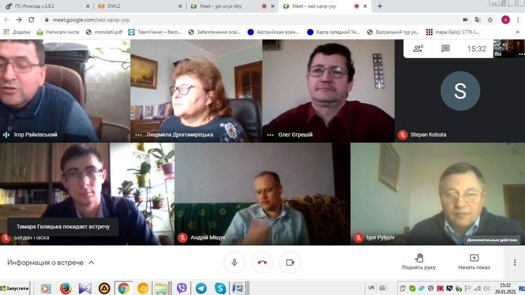 У різному завідувач кафедри історії України і методики викладання історії проф. І.Я. Райківський повідомив про стан готовності кафедрою до проведення двох Всеукраїнських наукових конференцій, які відбудуться 15 і 22 квітня 2021 р.: перша присвячена вшануванню пам’яті доктора історичних наук, почесного професора Прикарпатського національного університету імені Василя Стефаника Олександра Юхимовича Карпенка (1921–2013), довголітнього викладача кафедри історії України; друга – науково-практична – «Історико-краєзнавча діяльність у закладах освіти: проблеми і перспективи». У свою чергу, доц. А.З. Королько на прохання викладачів факультету філології Університету просив активно долучатися викладачів кафедри до участі у роботі двох наукових форумів: Міжнародного наукового конгресу «Василь Стефаник і світова культура», присвяченої 150-річчю з дня народження письменника, що відбудеться 13–14 травня 2021 р. на базі факультету філології; Всеукраїнської наукової конференції «Художньо-смислові координати творчості та громадсько-політична діяльність Леся Мартовича», приуроченої 150-річчю від дня народження члена «Покутської трійці» і яка відбудеться 11 лютого 2021 р. на базі факультету філології Прикарпатського національного університету імені Василя Стефаника.