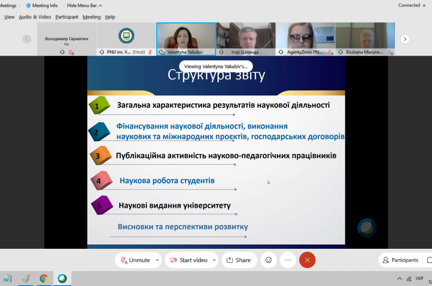 Прикарпатський національний університет імені Василя Стефаника кожного року покращує власні позиції у впливових вітчизняних та міжнародних рейтингах закладів вищої освіти. Цю позитивну тенденцію відзначила проректорка з наукової роботи, професорка Валентина Якубів під час онлайн-засідання вченої ради Університету за участю професорсько-викладацького складу.