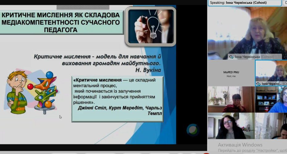 Предметом обговорення були питання про інноваційні процеси в сучасній освіті, суспільні виклики дистанційного та змішаного навчання, використання Smart-технологій в освітньому процесі, цифрових інструментів для створення простої та складної інфографіки, методи дослідницького навчання з використанням віртуальних лабораторій, здійснення формувального та підсумкового оцінювання результатів навчання, розвитку критичного мислення для протидії маніпуляціям і фейків у медійному просторі та ін.