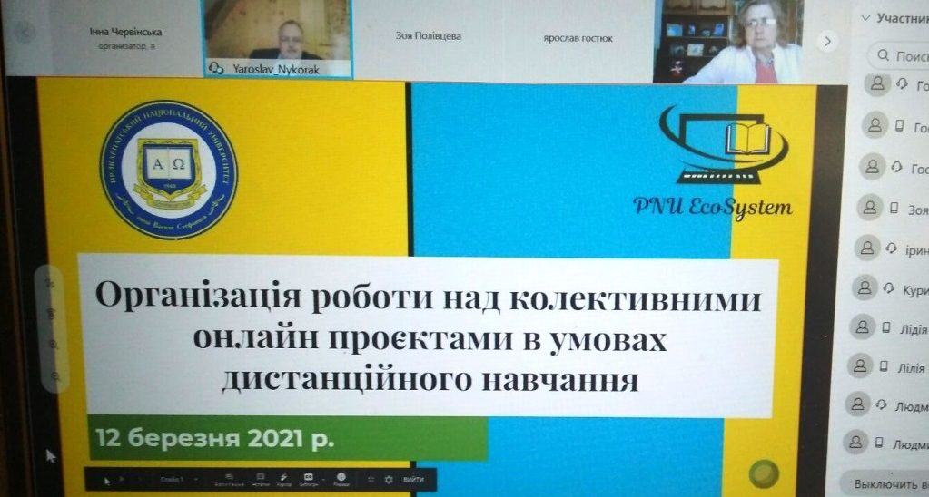 10–13 березня 2021 р. в Центрі інноваційних освітніх технологій «PNU EcoSystem» проходили тематичні курси підвищення кваліфікації «Цифрові технології в дистанційній освіті» для педагогічних працівників закладів дошкільної та загальної середньої освіти Білоберізької ОТГ Верховинського району і Косівського ліцею № 2 імені Михайла Павлика Косівської міської ради Івано-Франківської області. У навчальних тренінгах взяли участь 73 учасники. Курси відбулися у форматі онлайн з використанням відеоконференцзв’язку Cisco WebEx.