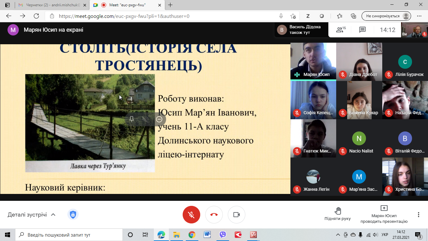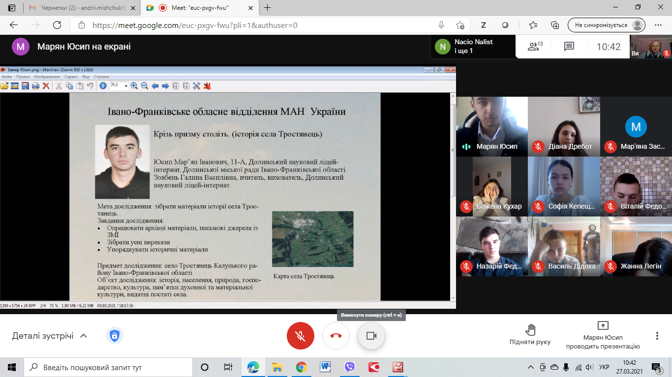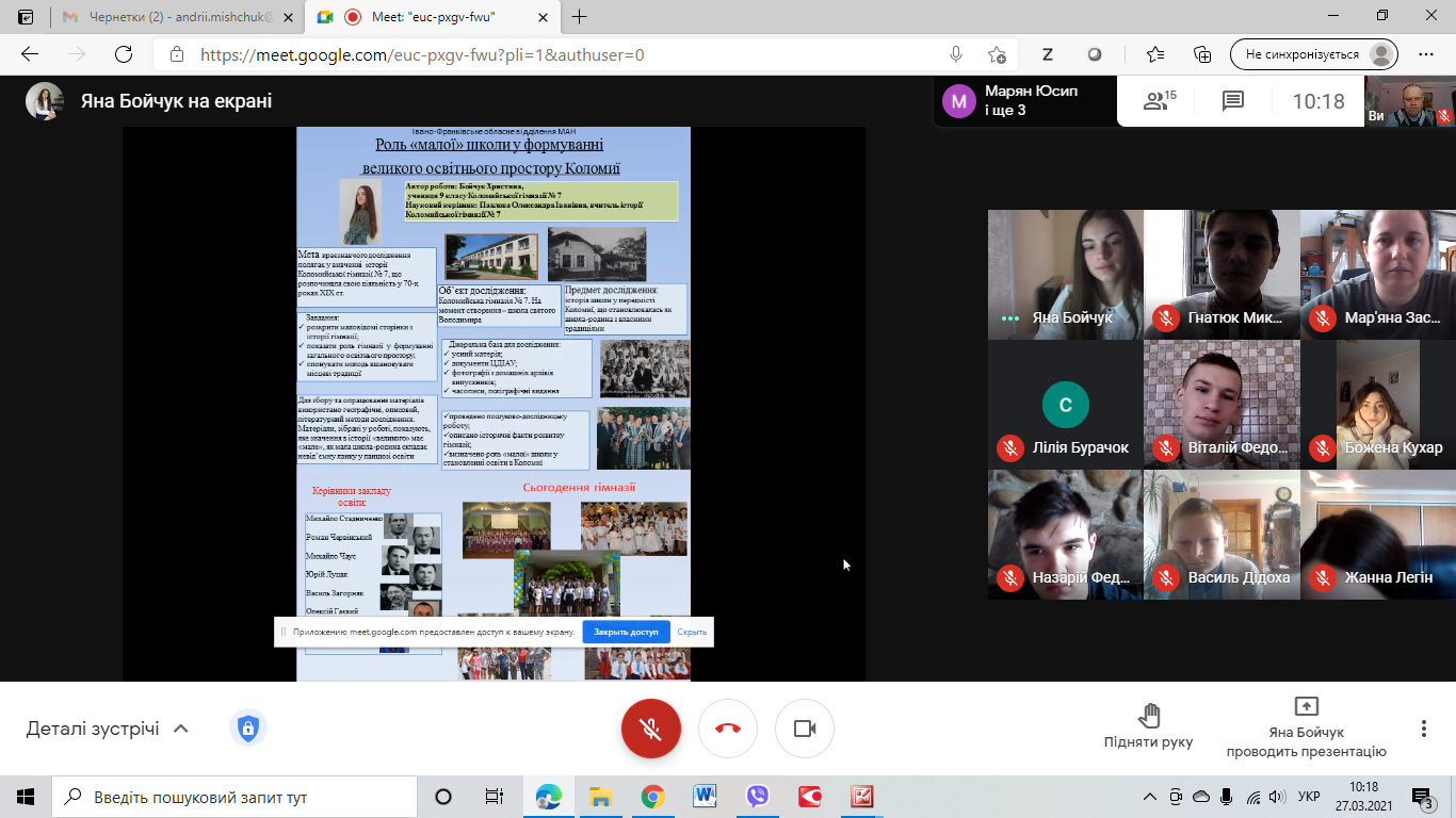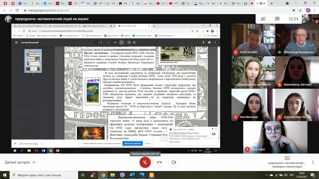 27–28 березня 2021 р. на базі Прикарпатського національного університету імені Василя Стефаника тривав ІІ (обласний) етап Всеукраїнського конкурсу-захисту науково-дослідницьких робіт учнів-членів Малої академії наук України. Вихованці відділення історії МАН України захищали своїх роботи 27 березня 2021 р. До складу журі секцій відділення історії ввійшли викладачі кафедри історії України і методики викладання історії Факультету історії, політології і міжнародних відносин. Зокрема, на секції «Історія України»працювали Андрій Королько і Богдан Паска, а на секції «Історичне краєзнавство» – Андрій Міщук.