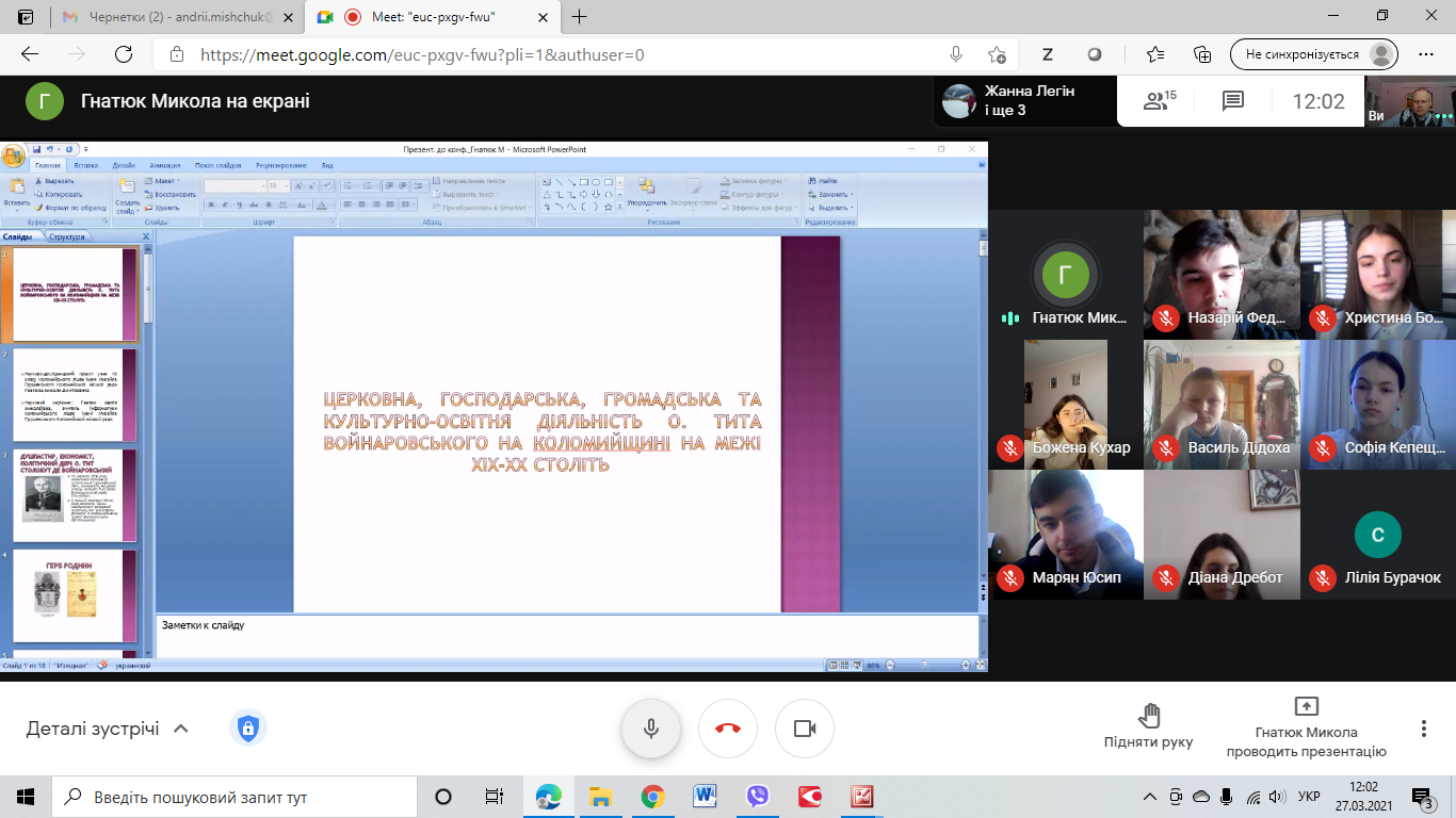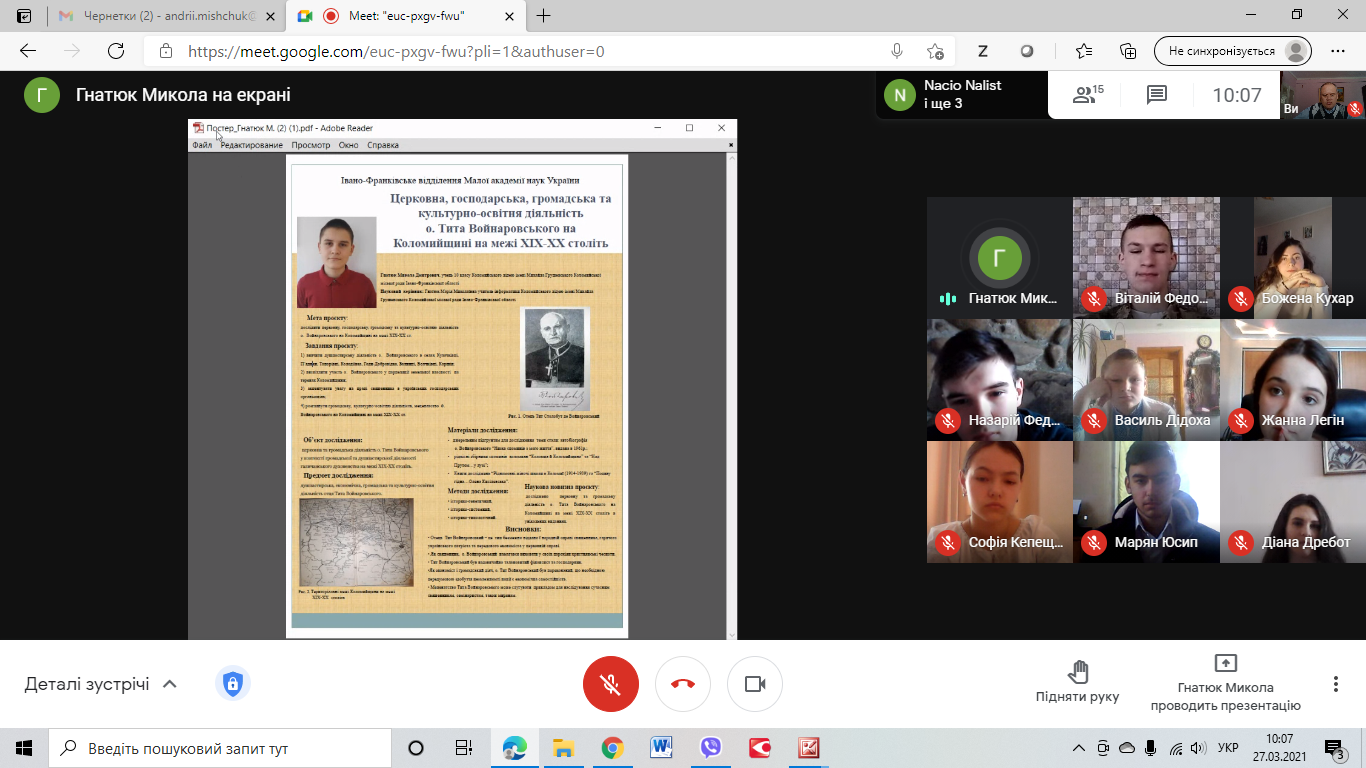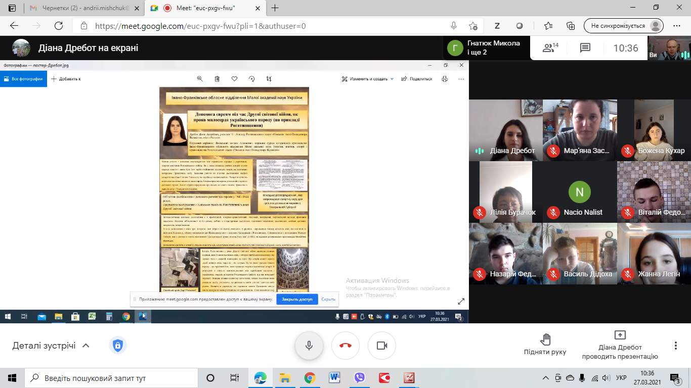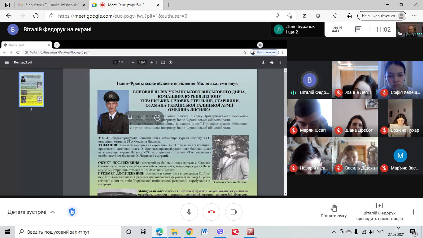 27–28 березня 2021 р. на базі Прикарпатського національного університету імені Василя Стефаника тривав ІІ (обласний) етап Всеукраїнського конкурсу-захисту науково-дослідницьких робіт учнів-членів Малої академії наук України. Вихованці відділення історії МАН України захищали своїх роботи 27 березня 2021 р. До складу журі секцій відділення історії ввійшли викладачі кафедри історії України і методики викладання історії Факультету історії, політології і міжнародних відносин. Зокрема, на секції «Історія України»працювали Андрій Королько і Богдан Паска, а на секції «Історичне краєзнавство» – Андрій Міщук.