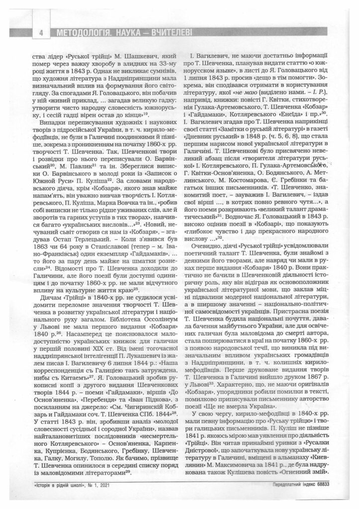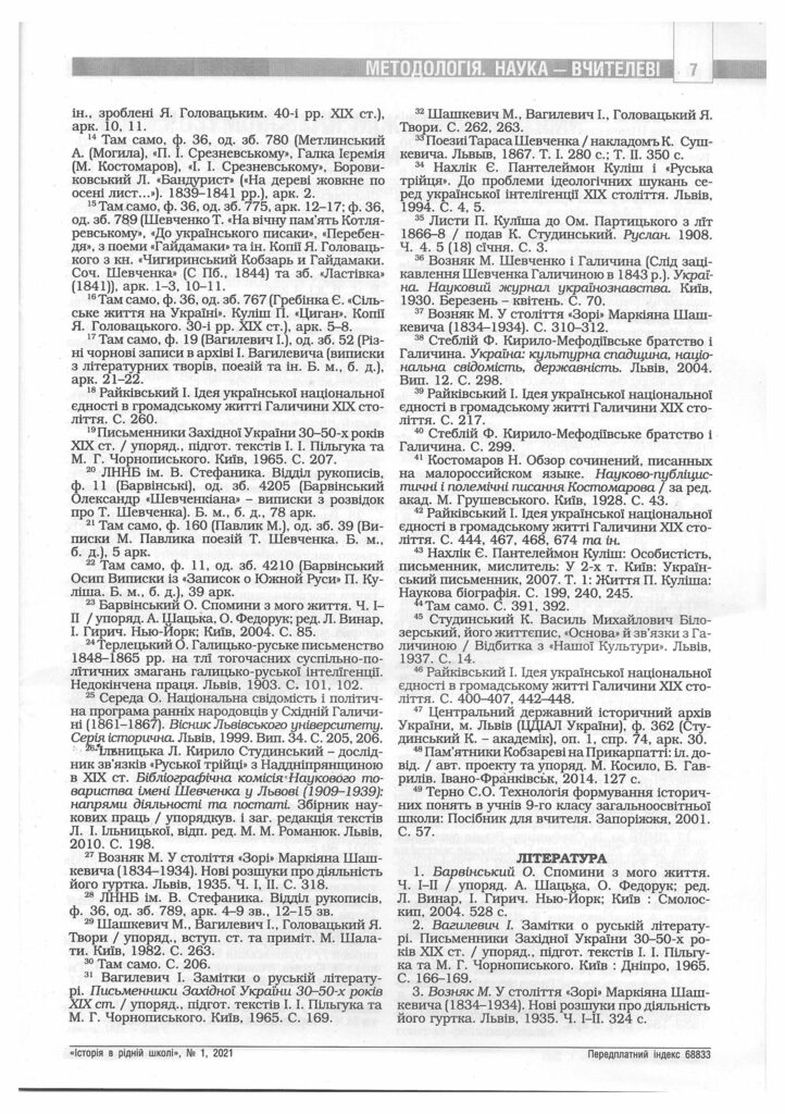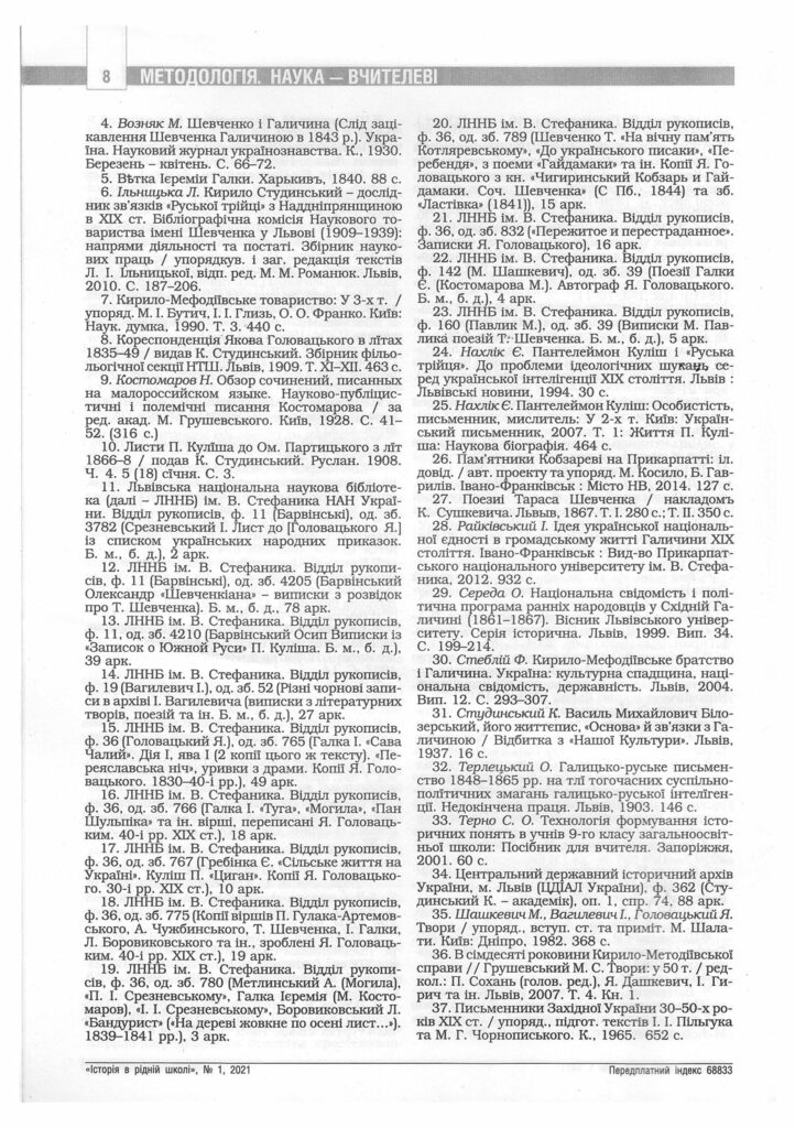 Райківський І. Галичина в ідейних поглядах і діяльності Кирило-Мефодіївського братства. До 175-річчя від заснування // Історія в рідній школі. Науково-методичний журнал. Київ, 2021. № 1 (225). С. 2–8.