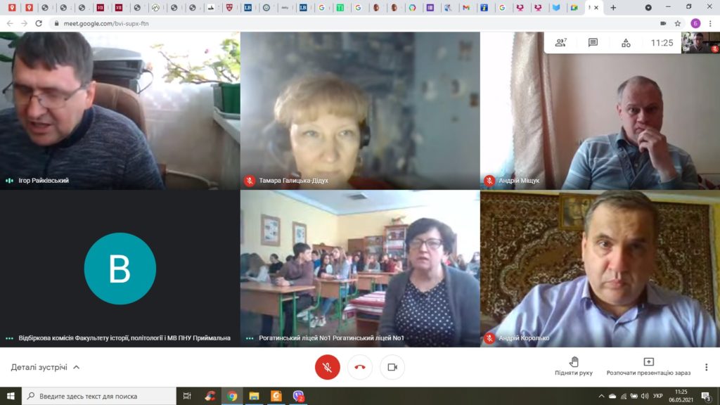 6 травня 2021 р. відбулася онлайн-зустріч викладачів кафедри історії України і методики викладання історії Прикарпатського національного університету імені Василя Стефаника з учнями 9–11 класів Рогатинського ліцею № 1 Рогатинської міської ради. У заході взяли участь члени гуртка історії України МАН Читати далі