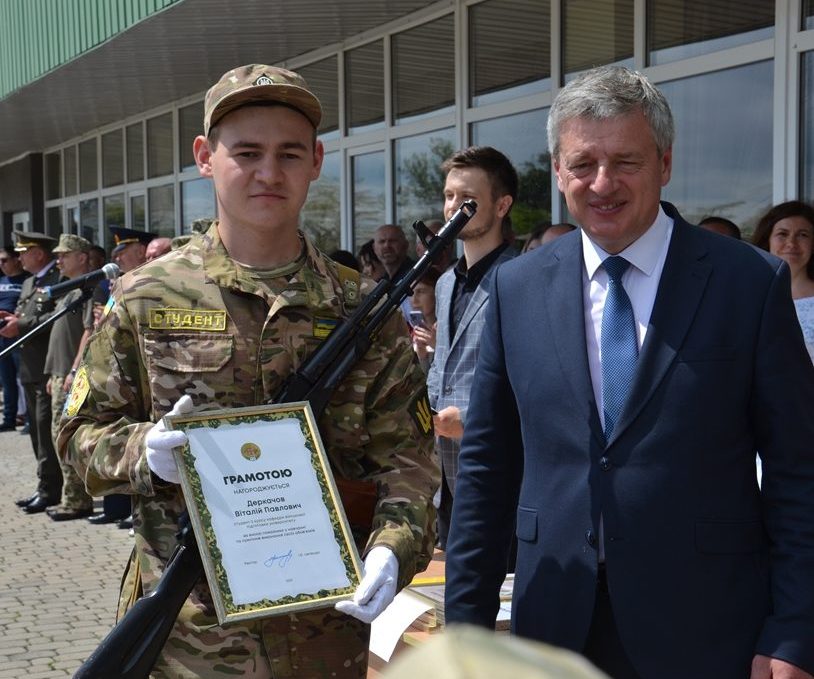 Вітаючи випускників кафедри військової підготовки та їхніх батьків, Ігор Цепенда побажав майбутнім офіцерам застосовувати здобуті в Університеті знання тільки в мирних умовах, однак висловив переконання, що вони зможуть своєю працею дати сигнал ворогам, які матимуть наміри порушити кордони української держави, що тут вони отримають гідну відсіч.