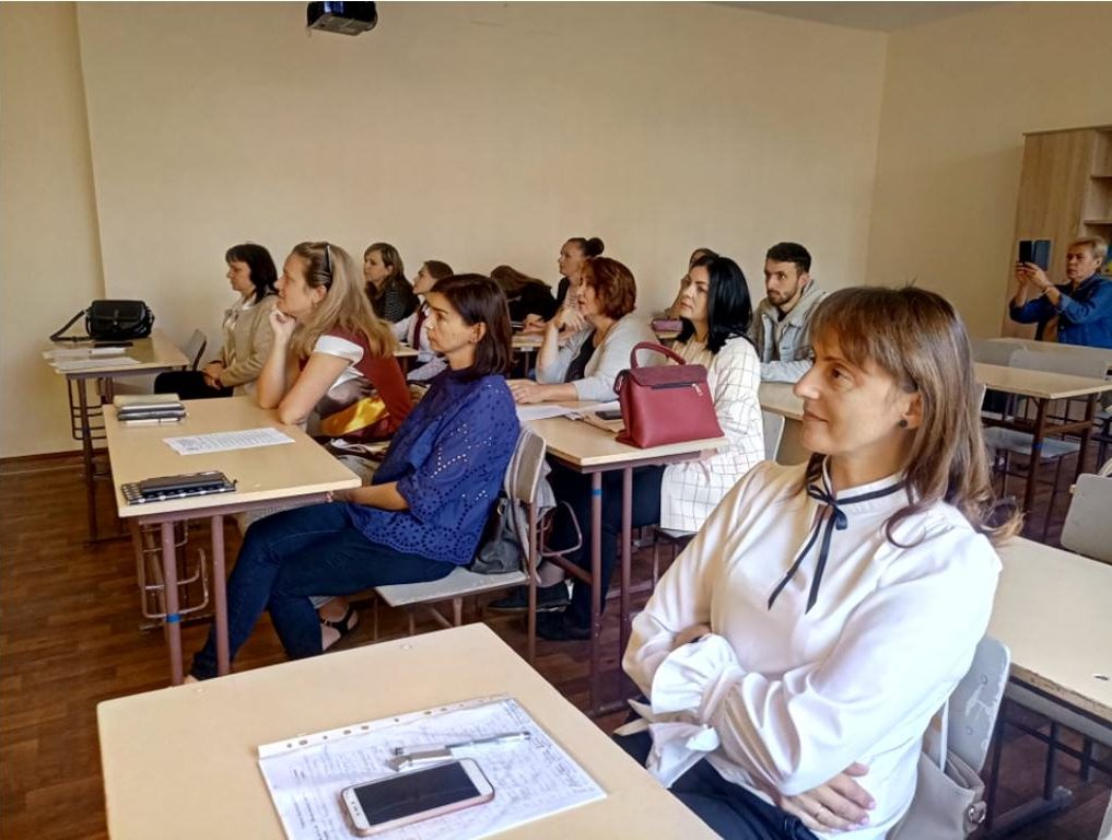 Команда фахівців Центру виступила одночасно на трьох локаціях – учителів початкової школи, суспільно-гуманітарних предметів і заступників керівників закладів освіти.