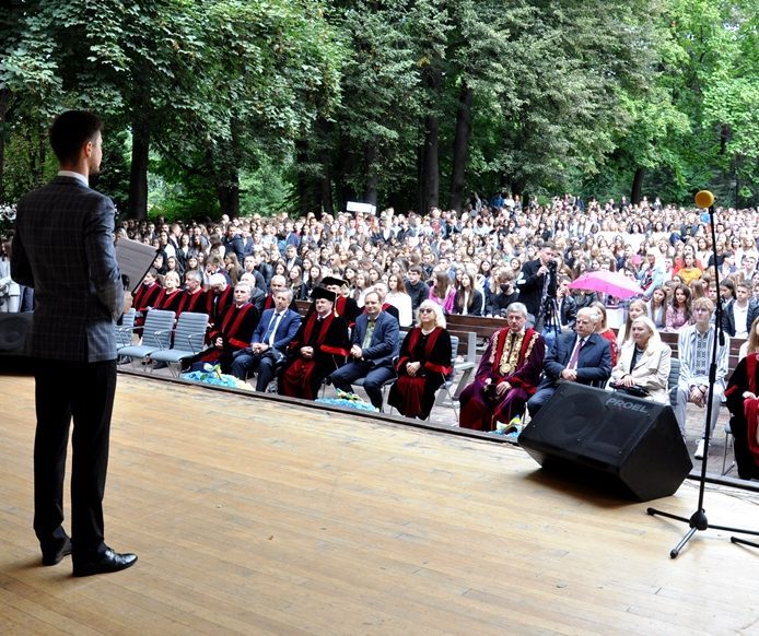 З вітальними словами перед учасниками урочистостей виступили почесні гості. До першокурсників також звернулися голова студентського Сенату Університету Наталія Котурбаш та голова Профкому студентів і аспірантів Університету Назарій Дюк. Вони закликали молодих людей бути активними, ініціативними та успішними у навчанні.