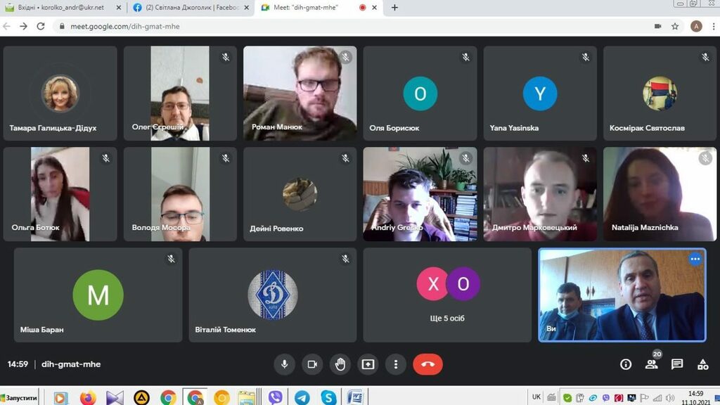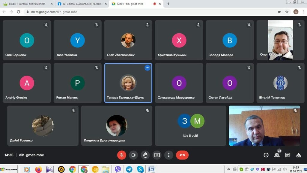 11 жовтня 2021 р. за допомогою сервісу організації конференцій Google Meet відбулася настановча наради з організації проведення виробничої педагогічної (асистенської) практики в закладах вищої освіти і закладах загальної середньої освіти для студентів ІІ курсу спеціальності 014 Середня освіта (Історія) і 032 Історія та археологія ОР «Магістр» (денна форма навчання).