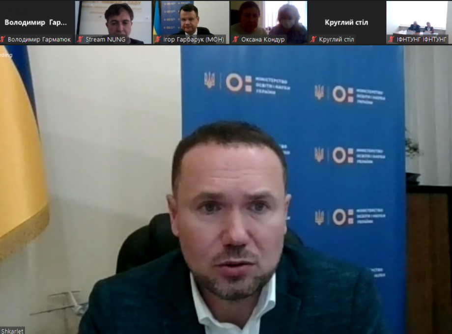 У вітальному слові до учасників круглого столу Міністр освіти і науки України Сергій Шкарлет зазначив, що Президентський університет буде повноформатним освітньо-науковим структурним кластером, який зможе поєднати зусилля викладачів, студентів, роботодавців, науковців, а також усіх зацікавлених в комерціалізації провідних наукових досліджень стейтхолдерів. Міністр побажав учасникам плідної дискусії та закликав формувати активні інноваційні ідеї, зробивши наголос на існуючих у світі тенденціях.