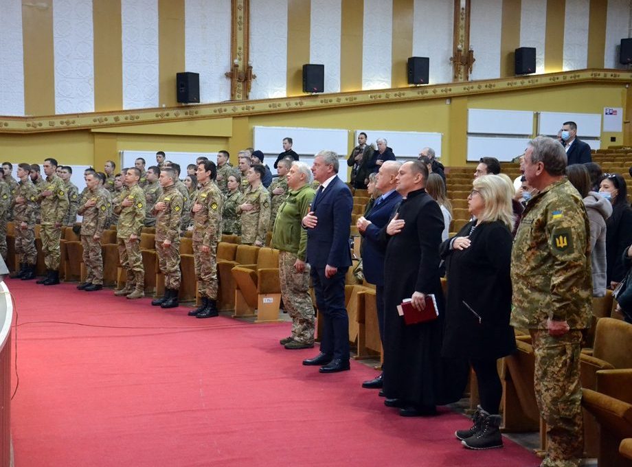 Не чекати поклику, а вже сьогодні ставати офіцерами ЗСУ закликав випускників заступник військового комісара обласного територіального центру комплектування та соціальної підтримки Юрій Мухін. Зокрема, він підкреслив, що кращі сини і доньки України сьогодні захищають на східних кордонах нашої держави захищають і Україну, і її майбутнє та європейський вибір кожного українця.