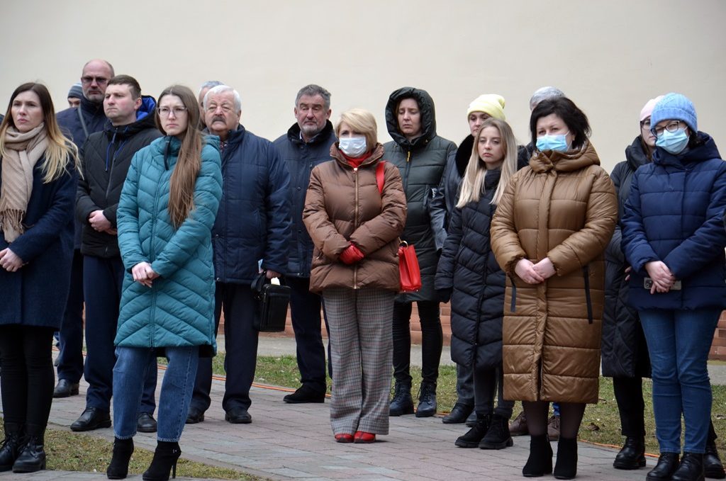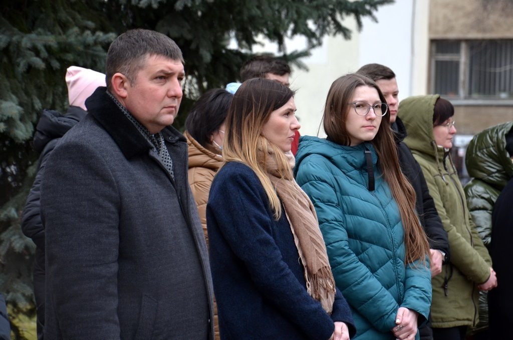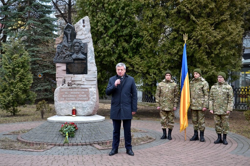 Біля Обеліску, присвяченому студентам та викладачам, які загинули у боротьбі за незалежність України, віддати шану Героям зібралися представники ректорату, викладачі, студенти, працівники, рідні Романа Гурика та представники ЗМІ.