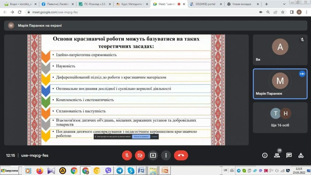 Завершились курси тематичною дискусією з пошуку інноваційних методів та форм роботи для творчого, інтелектуального, фізичного, духовного розвитку дітей засобами туристсько-краєзнавчої творчості, формування національно-патріотичних почуттів, яку провели директор Івано-Франківського обласного державного центру туризму і краєзнавства учнівської молоді, доктор філософії, заслужений працівник освіти України Михайло Косило та методисти Івано-Франківського обласного інституту післядипломної педагогічної освіти Оксана Марковецька і Анастасія Островська.