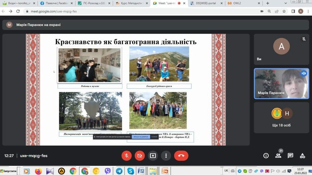 21–25 березня 2022 р. на базі Івано-Франківського обласного інституту післядипломної педагогічної освіти та Івано-Франківського обласного державного центру і туризму і краєзнавства учнівської молоді відбувалися курси підвищення кваліфікації методистів та керівників гуртків (туристсько-краєзнавчого та військово-патріотичного напрямів) закладів позашкільної освіти (Варіант 2 (КГПОТК) – № КГПОТК2/01). Слухачем цих курсів був кандидат історичних наук, доцент кафедри історії України і методики викладання історії Андрій Королько, який є розробником програми гуртка «Історичне краєзнавство» для закладів вищої освіти, затвердженої Інститутом модернізації закладів освіти МОН України.
