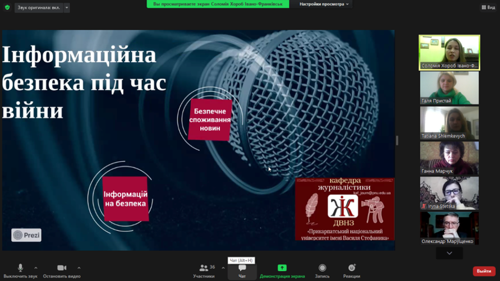 Серію тематичних тренінгів «Інформаційна безпека під час війни» розпочали викладачі кафедри журналістики факультету філології Прикарпатського національного університету імені Василя Стефаника. Заняття проходять у форматі онлайн. Окрім викладачів, працівників та студентів Університету стати учасниками тренінгів можуть усі охочі. Читати далі