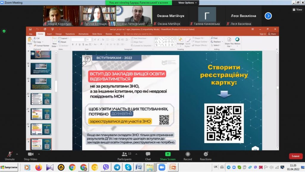 1 квітня 2022 р. доцент кафедри історії України і методики викладання історії Андрій Королько долучився до онлайн-зустрічі «Обери своє майбутнє» з випускниками та педагогами Трацького ліцею Матеївецької сільської ради Коломийського району Івано-Франківської обл., організованої Прикарпатським національним університетом імені Читати далі