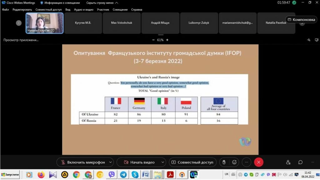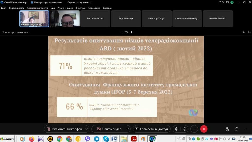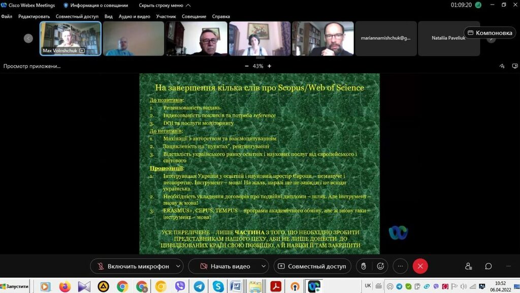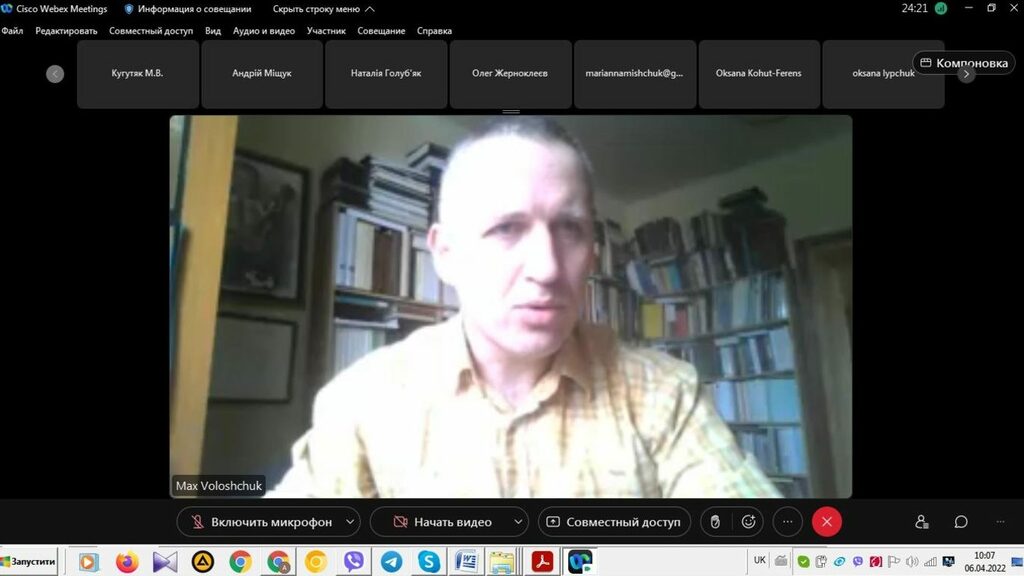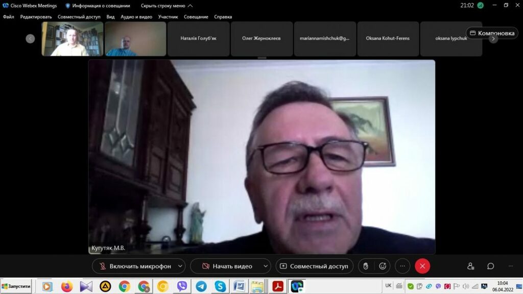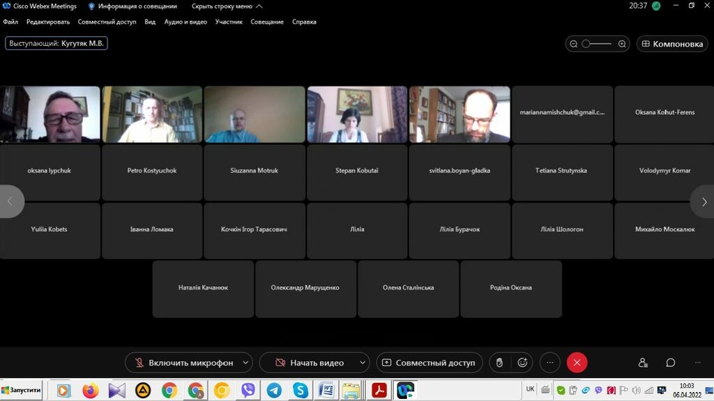6 квітня 2022 р. викладачі кафедри історії України і методики викладання історії взяли участь у пленарному засіданні звітної наукової веб-конференції секції історичних наук Факультету історії, політології і міжнародних відносин. У вступному слові керівник секції, головуючий на засіданні декан Факультету проф. М.В. Кугутяк підкреслив важливість заходу, звертаючи особливу вагу не те, що ця подія є майданчиком для обміну думок між науковцями Факультету та створює додаткову можливість представити результати власних досліджень, які провадить професорсько-викладацький склад структурного підрозділу Університету.