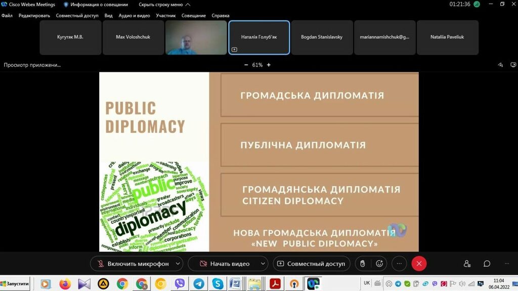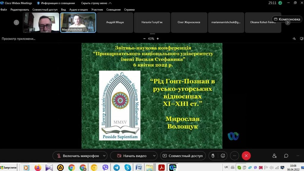 На конференції виступили доктор історичних наук, професор кафедри всесвітньої історії Мирослав Волощук (тема доповіді – «Рід Гонт-Познан в русько-угорських відносинах ХІ–ХІІІ ст.») і кандидат політичних наук, старша викладачка кафедри міжнародних відносин Наталія Голуб’як (тема доповіді – «Громадська дипломатія та її вплив на політику країн ЄС щодо російського вторгнення в Україну»).