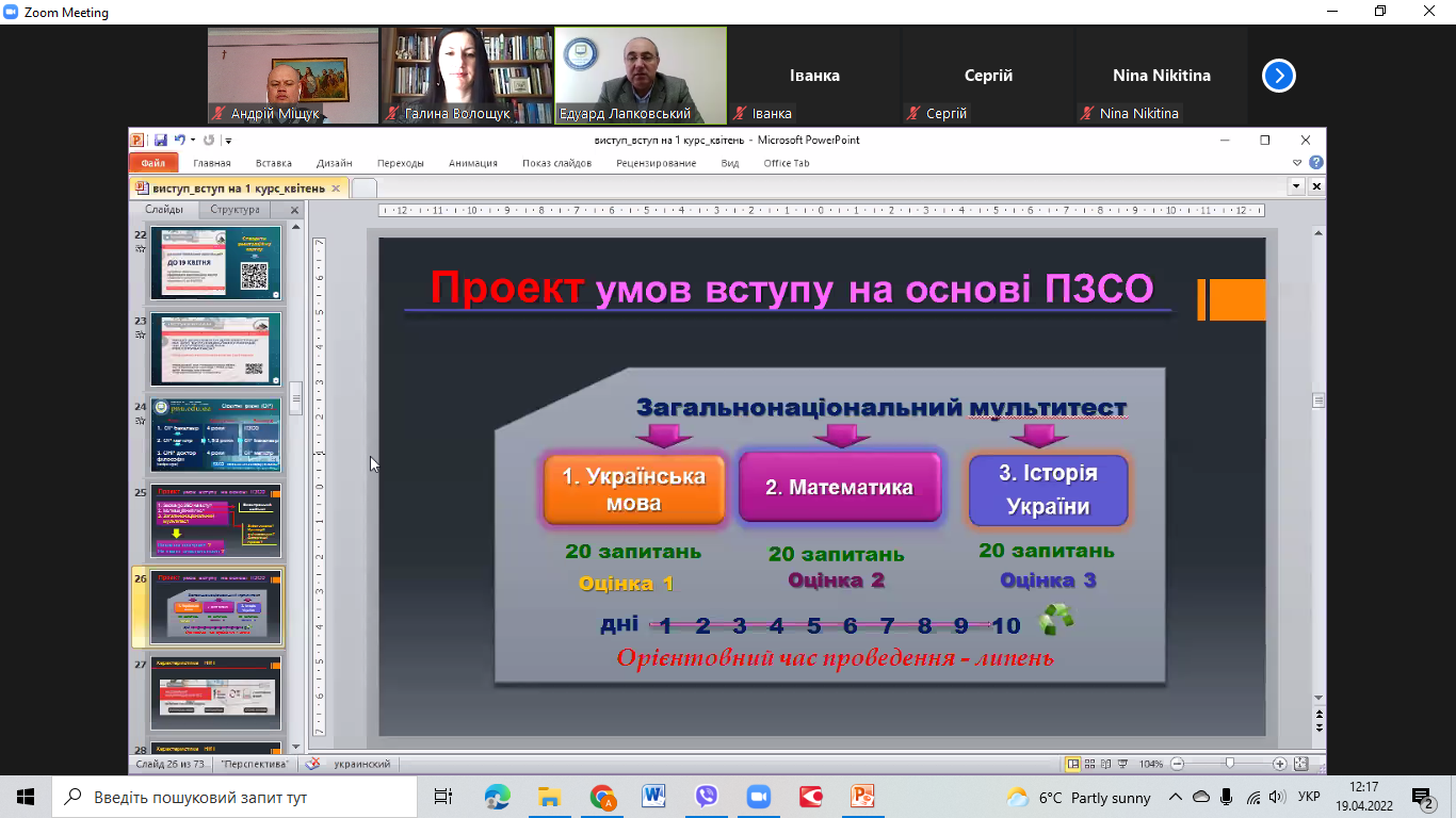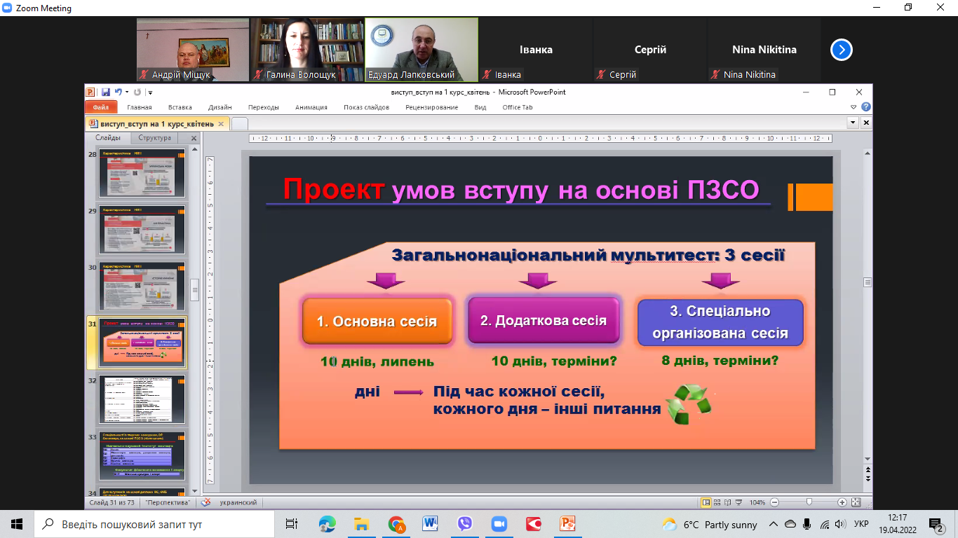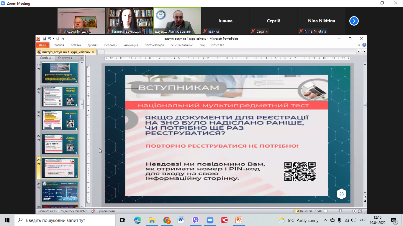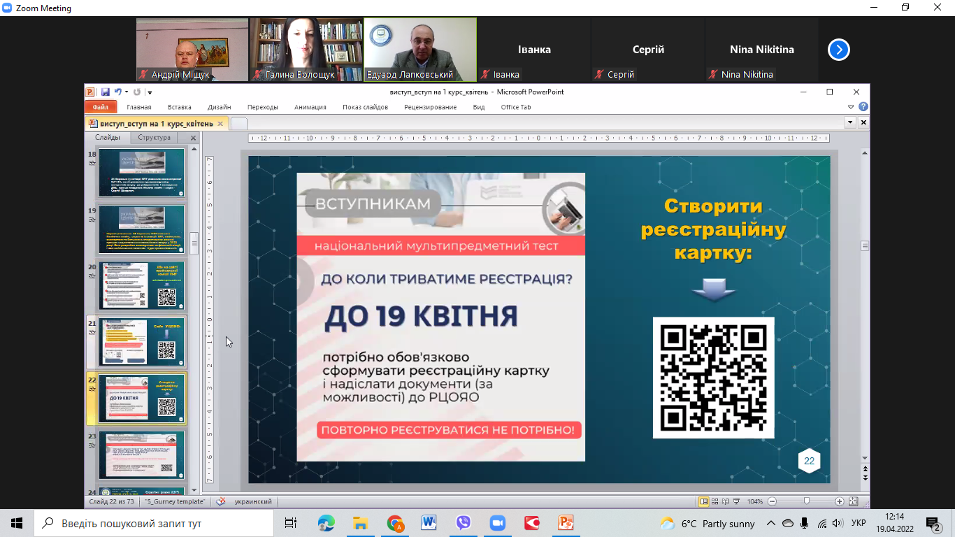19 квітня 2022 р. відповідальний секретар відбіркової комісії Факультету історії, політології і міжнародних відносин, доцент кафедри історії України і методики викладання історії Андрій Міщук долучився до онлайн-зустрічі «Особливості вступу–2022. Що змінилося?» в рамках проєкту «Обери своє майбутнє» з випускниками Войнилівського ліцею Войнилівської ТГ та Тустанського ліцею Дубовецької ТГ Калуського району Івано-Франківської обл., організованої Прикарпатським національним університетом імені Василя Стефаника.