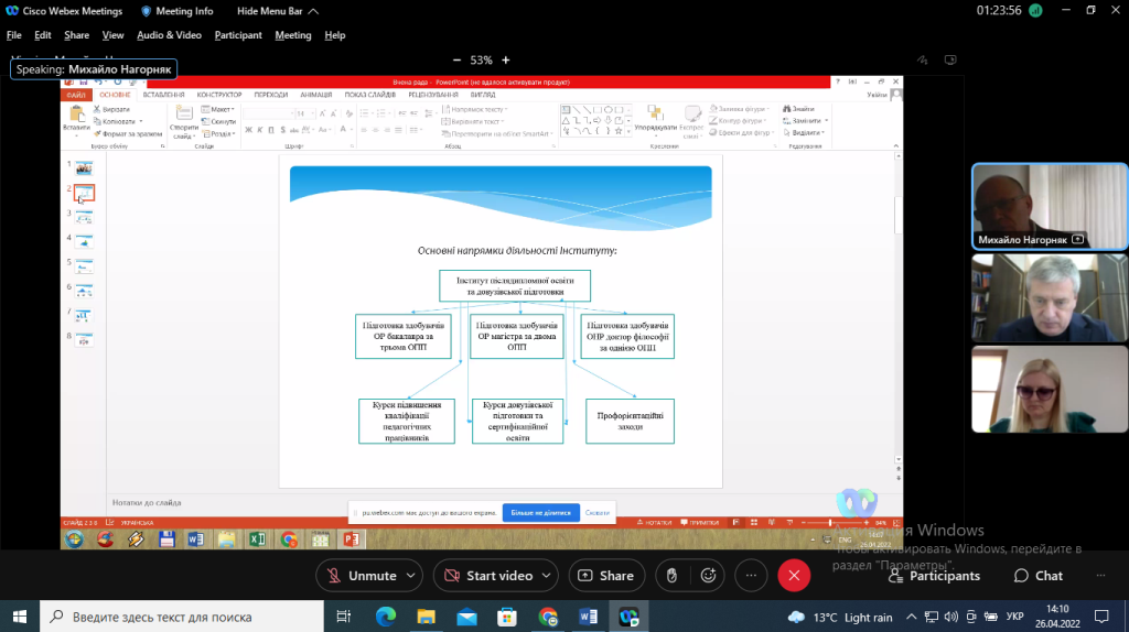 26 квітня 2022 р. в Університеті відбулося онлайн чергове засідання вченої ради. Ректор Університету, професор Ігор Цепенда розпочав засідання хвилиною мовчання у пам’ять про загиблих співвітчизників, котрі загинули у боях з російським агресором.