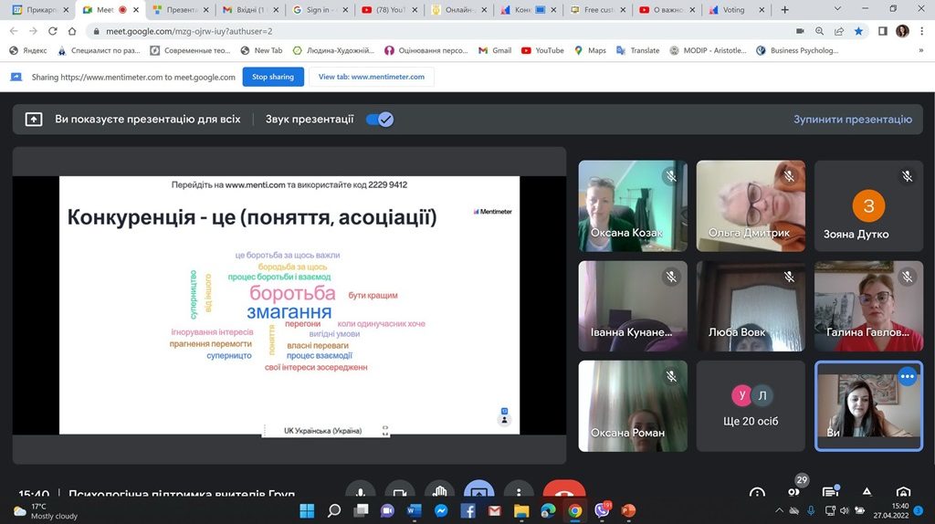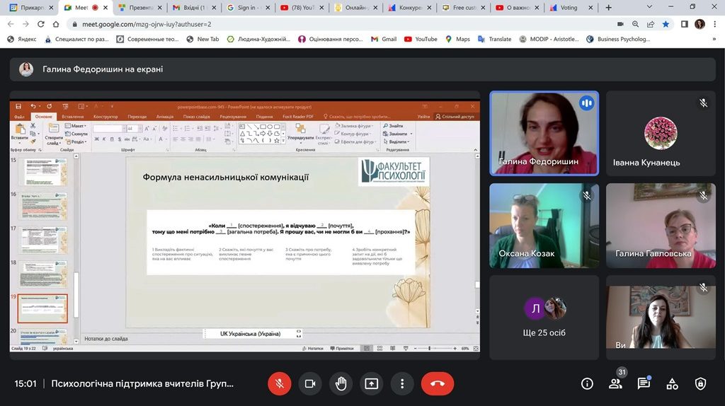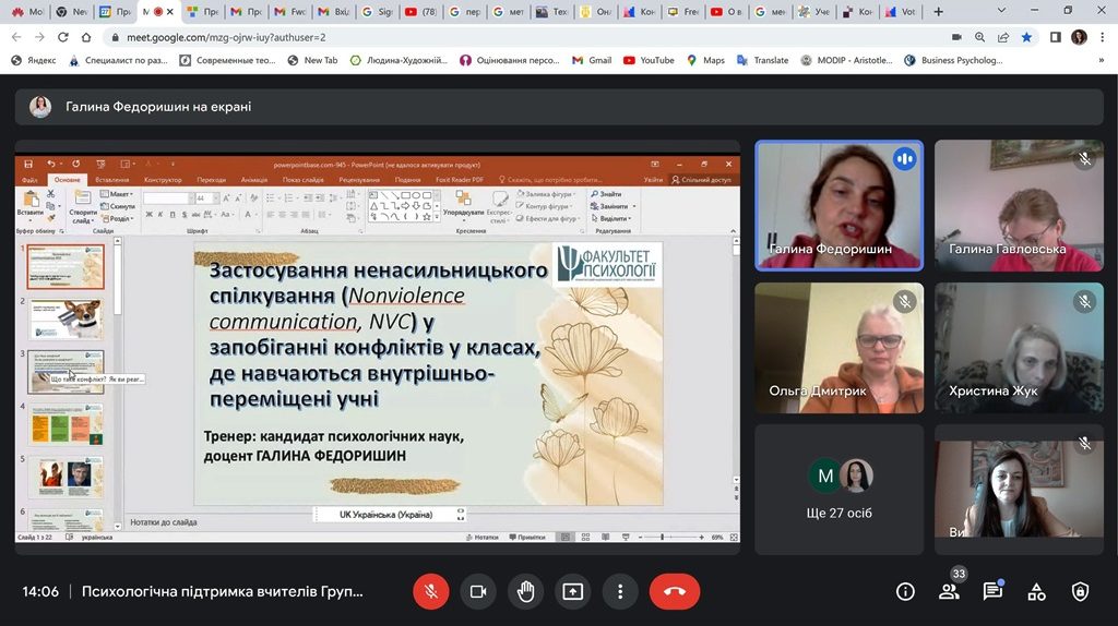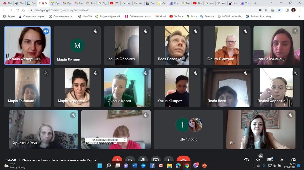 У рамках всеукраїнського проєкту «Психологічна підтримка вчителів» доцентки факультету психології Університету Оксана Чуйко, Галина Федоришин, Оксана Паркулаб, Оксана Федик розпочали серію дистанційних тренінгів з групами вчителів, психологів та соціальних працівників Львівської та Херсонської областей.