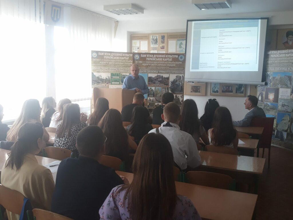 Після цього виступив відповідальний секретар відбіркової комісії Факультету історії, політології і міжнародних відносин, доц. кафедри історії України і методики викладання історії Андрій Міщук. Він відзначив, що через воєнний стан в Україні умови цьогорічного вступу, зокрема, в заклади вищої освіти, дещо змінилися. Важливо пам’ятати, що базою для вступу на спеціальності Факультету є повна середня освіта. ЗНО цього року замінили національним мультипредметним тестом (НМТ). Реєстрація на НМТ відбувається на сайті УЦОЯО, а електронний кабінет вступника реєструватиметься на сайті vstup.edbo.gov.ua. Підтвердити свою участь у НМТ треба з 20 травня до 7 червня. Також МОН України передбачило повторну реєстрацію на тест з 10 по 20 червня.
