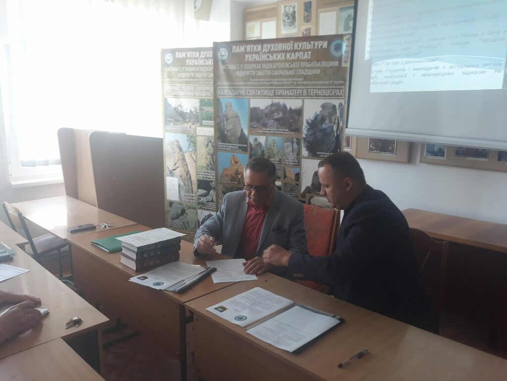 Початку загальних зборів трудового корективу Факультету передувало укладення Договору про співпрацю між Факультетом історії, політології і міжнародних відносин та Угорницьким ліцеєм Івано-Франківської міської ради, який підписали декан Факультету М.В. Кугутяк та заступник директора закладу загальної середньої освіти А.С. Данищук. Предметом Договору є співробітництво у сфері навчальної, науково-дослідної, науково-методичної, інформаційної діяльності з метою реалізації освітніх програм, використання науково-педагогічних кадрів, навально-лабораторних баз, соціальної інфраструктури, організації підвищення кваліфікації педагогічних працівників, спільного проведення науково-дослідних робіт, підготовки наукових кадрів, розробки навчально-методичного забезпечення.