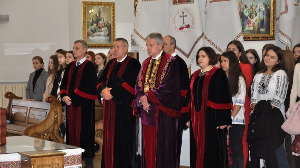 Традиційно святкова академія з нагоди посвяти першокурсників у студенти розпочалася з Божественної Літургії за благословення. На урочистому богослужінні, яке провів отець Микола Шиманський парафії Різдва Пресвятої Богородиці УГКЦ, були присутні ректор Університету Ігор Цепенда, представники ректорату, викладачі та працівники, першокурсники та їх батьки.