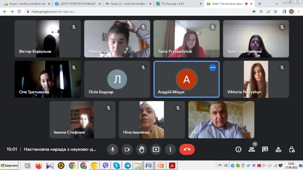 17 вересня 2022 р. за допомогою сервісу організації конференцій Google Meet відбулася нарада з організації проведення науково-дослідної практики для студентів ІІ курсу спеціальності 014 Середня освіта (Історія) ОР «Магістр» (заочна форма навчання). Зазначена практика студентів є невіддільною складовою Читати далі