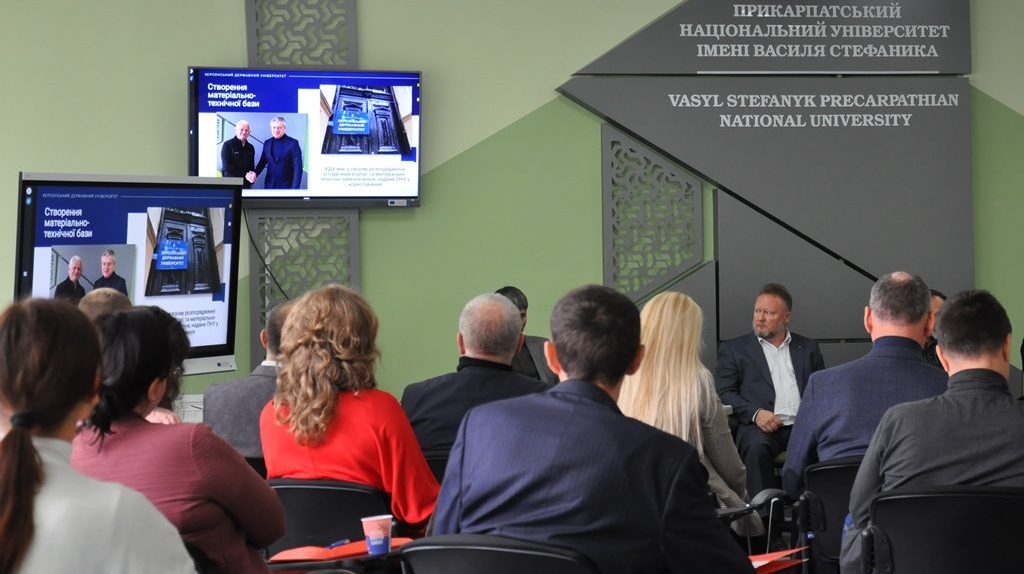 Під час виступу перша проректорка Університету провела презентацію про особливості функціонування і управління Прикарпатським національним університетом імені Василя Стефаника в умовах війни, взаємодію ПНУ з Херсонським державним університетом. Професорка Валентина Якубів, зокрема, підкреслила, що саме цифровізація, електронний документообіг, налагоджена система дистанційного навчання допомогли втримати освітній процес в Університеті на належному рівні. Вона також поділилася досвідом закладу вищої освіти щодо подальшого розвитку міжнародної співпраці та налагодження нових партнерських зв’язків. Валентина Якубів розповіла і про досягнення науковців Університету, студентів-спортсменів, впровадження нових соціальних проєктів, активну волонтерську діяльність закладу вищої освіти задля підтримки ЗСУ. Окремо звернула увагу на плідну співпрацю з Херсонським державним університетом, який відповідно до наказу МОН України з квітня місяця, на період воєнного стану, продовжив свою роботу на базі Прикарпатського національного університету імені Василя Стефаника.