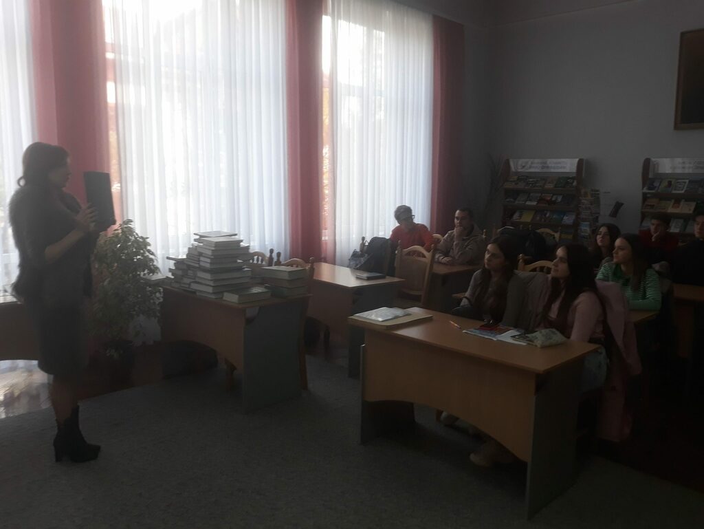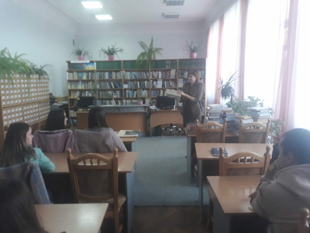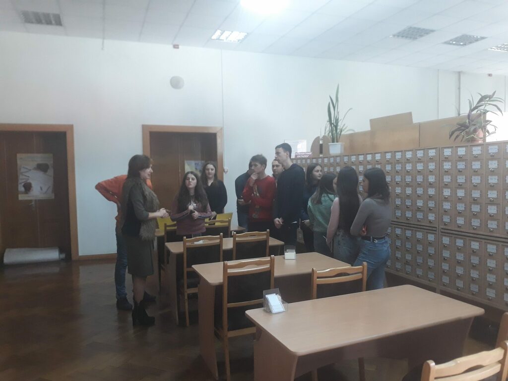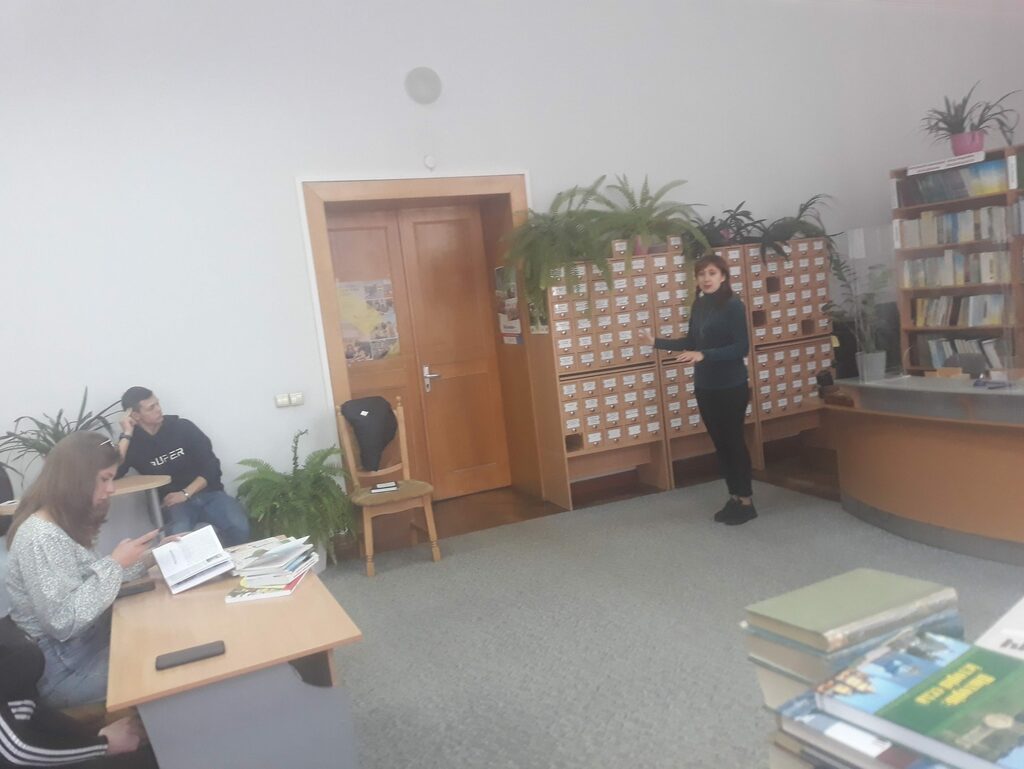 Цього разу студенти груп СОІ–22 і СОІ–21 відвідали обласну книгозбірню відповідно 27 вересня і 5 жовтня. Діапазон дидактичних форм роботи у царині позакласної історико-краєзнавчої гурткової роботи розширюється. Студенти у відділі краєзнавчої літератури обласної книгозбірні виконують низку індивідуальних самостійних робіт: здійснюють бібліографічний опис та анотації (виписки) історико-краєзнавчої літератури про свій населений пункт та рідний край; впорядковують матеріал розгорнутих історико-краєзнавчих робіт про свої рідні села й містечка; вивчають історико-краєзнавчу літературу щодо походження власного населеного пункту… А поки що на початку семестру – екскурсія для молодих людей по відділах обласної бібліотеки, методичний семінар з організації роботи студентів у відділі історико-краєзнавчої літератури.