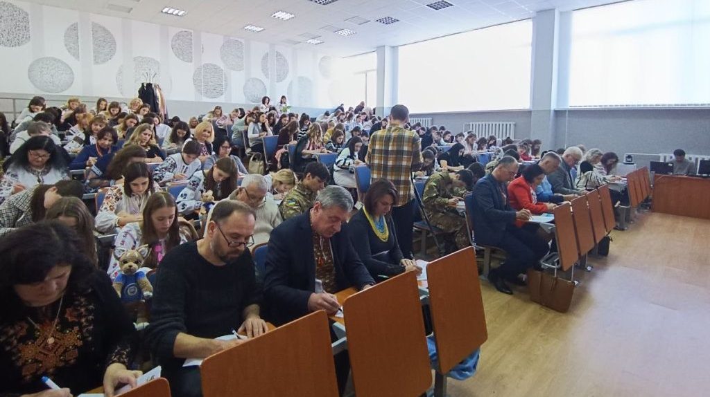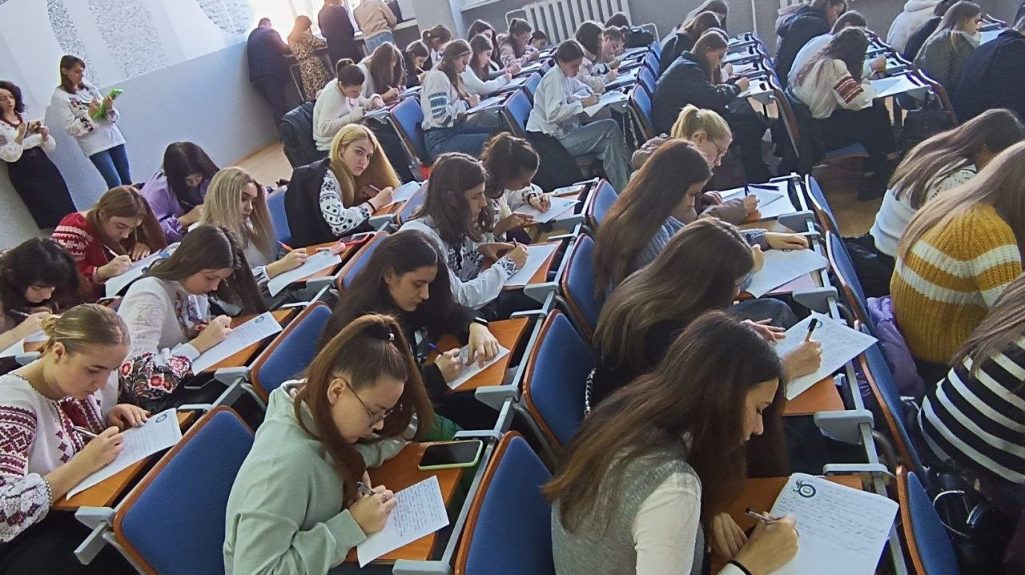 Сьогодні, в День української писемності та мови, у Прикарпатському національному університеті імені Василя Стефаника традиційно писали Всеукраїнський радіодиктант національної єдності. Цьогоріч це був ХХII диктант. За умов сьогодення мовний флешмоб пройшов в Університеті у змішаному форматі. Близько півтори сотні охочих – це представники ректорату, професорсько-викладацького складу, працівники та студенти – зібралися в лекційній аудиторії, інші ж мали можливість приєднатися в режимі онлайн за допомогою університетської хмарної платформи pu.webex.com як зі своїх робочих кабінетів, аудиторій, так і з дому.