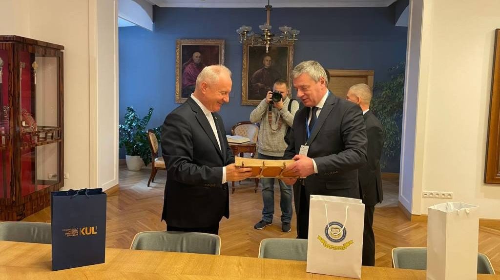Ректор Люблінського католицького університету Івана Павла ІІ Мирослав Каліновський також розповів про свій навчальний заклад та цікаві проєкти останніх років. Він провів для гостей невелику екскурсію університетом. По завершенні зустрічі Мирослав Каліновський запросив колегу зробити запис у Книзі Поважних гостей.
