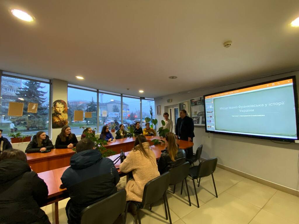 Окрім цього, Юрій Дем’янів провів показове заняття у рамках проєкту та курсу з історії міста Івано-Франківська «Місце Івано-Франківська в історії України», де студенти дізналися про маловідомі сторінки з історії заснування нашого обласного центру, основні передумови і причини його появи, біографії його засновників, а також шляхи збагачення нашого міста у період новочасної доби. Ця отримана інформація, сподіваємося, стане своєрідним містком для набуття студентами другого курсу нових умінь і навичок під час проходження ними на початку наступного семестру виробничої історико-краєзнавчої практики.