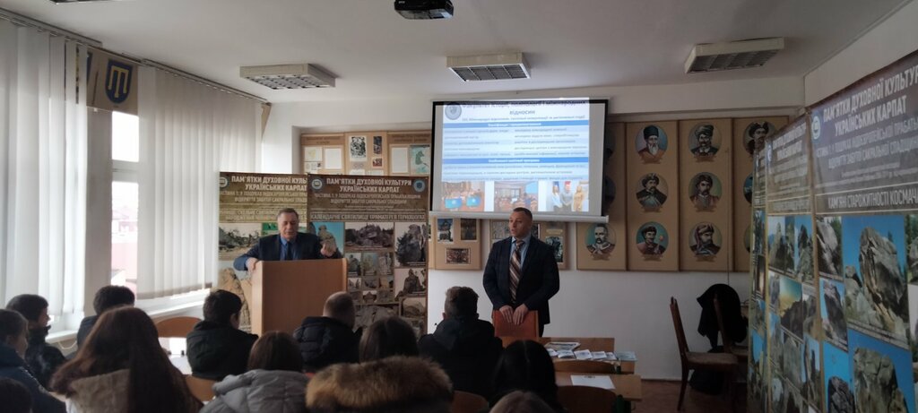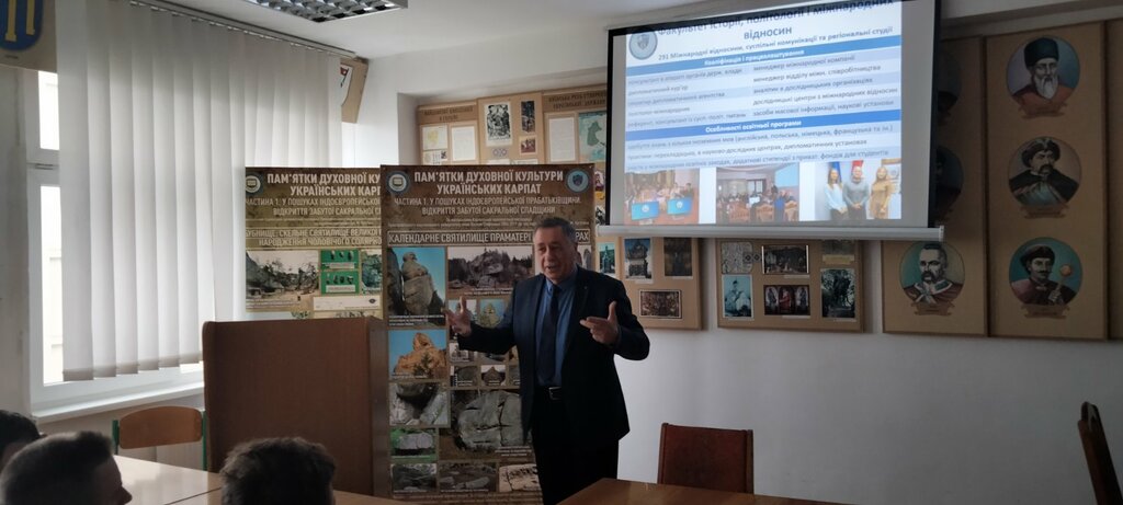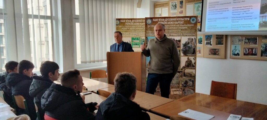 На початку зустрічі учнів 9–11 класів привітав декан Факультету Кугутяк Микола Васильович, який у своєму виступі ознайомив зі структурою університету. Микола Васильович акцентував увагу на тому, що Прикарпатський національний університет імені Василя Стефаника є класичним університетом та науково-освітнім центром, який орієнтується на міжнародні стандарти освіти. Сенаторка Анастасія Бариляк, репрезентуючи студентство Факультету, розповіла про цікаві особливості студентського життя і дозвілля.