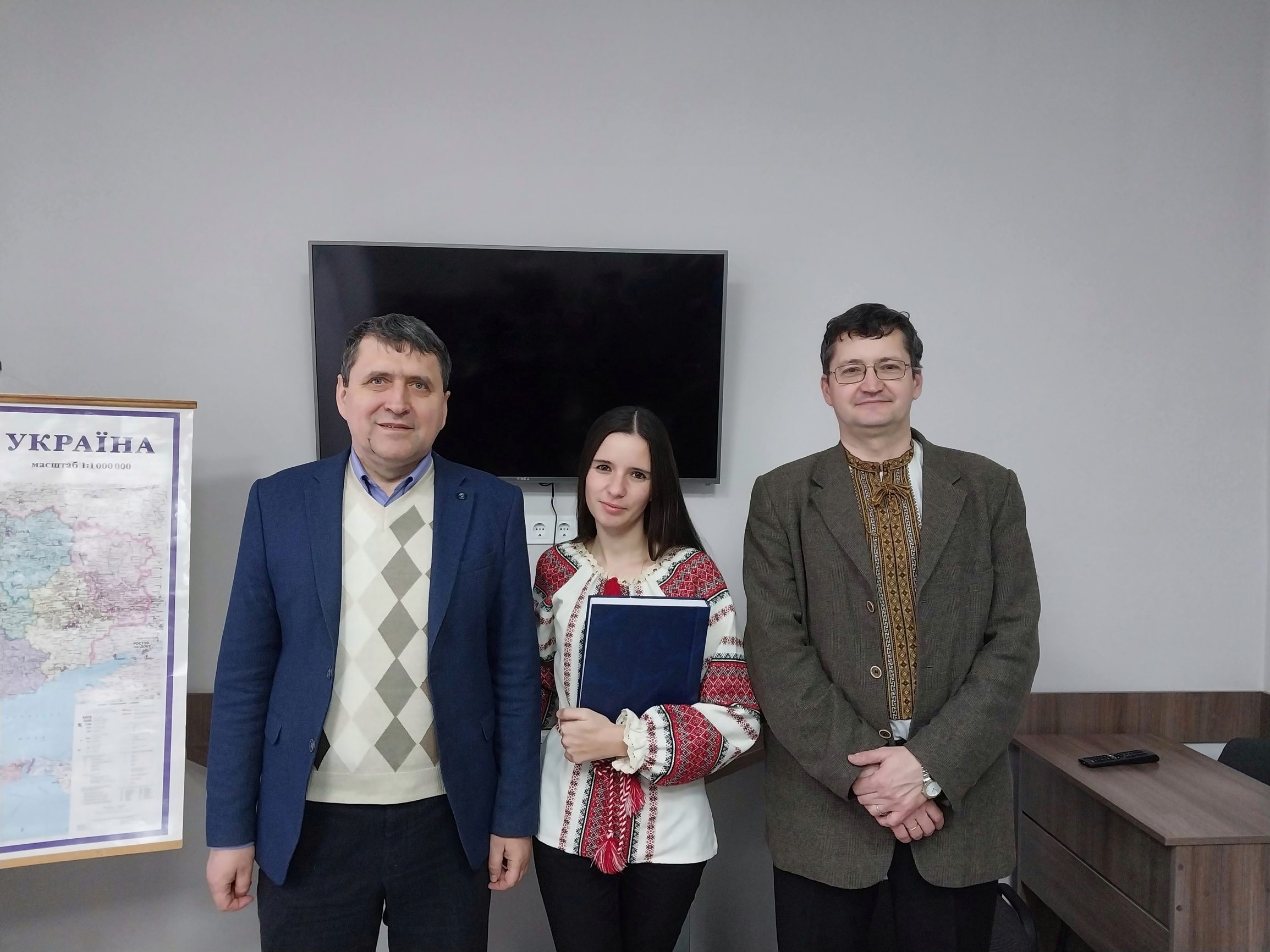 Колектив кафедри історії України і методики викладання історії щиро вітає Г.М. Паску та його наукового керівника доцента А.З. Королька з успішним захистом дисертаційного дослідження. У важких умовах воєнного часу наукове життя продовжується, віримо в перемогу України та її героїчних захисників і захисниць!