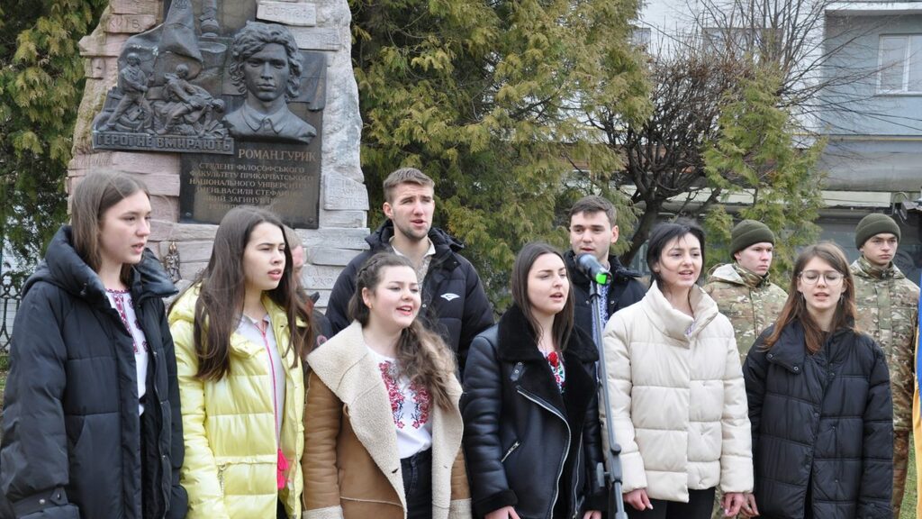 Захід приурочений Дню пам’яті Героїв Небесної Сотні завершився на патріотичній ноті виконанням студенткою Прикарпатського національного університету імені Василя Стефаника Мартою Орнат пісні «Ой у лузі червона калина».