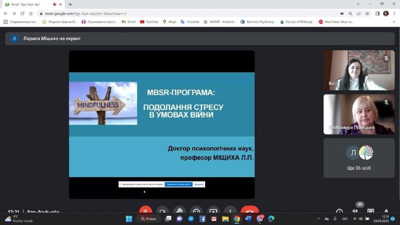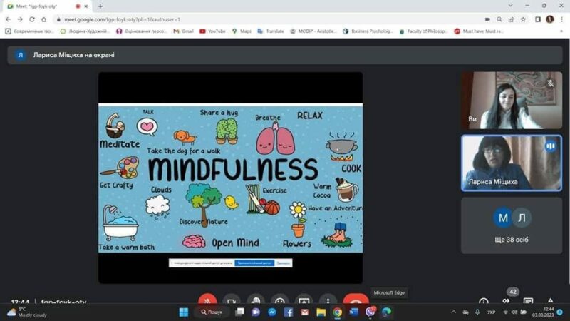 Лариса Міщиха, доктор психологічних наук, доцент, професор кафедри загальної та клінічної психології Прикарпатського національного університету імені Василя Стефаника представила дуже цікаві дієві психологічні техніки під час доповіді «MBSR-програма у подоланні стресу в умовах війни».