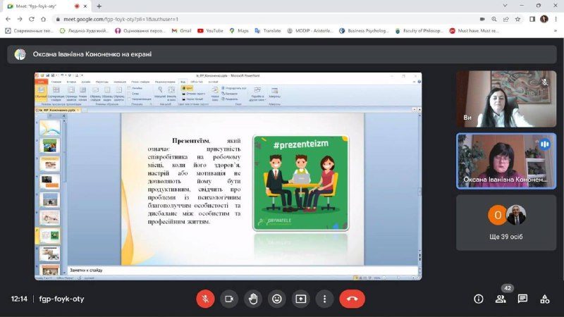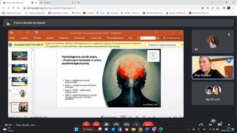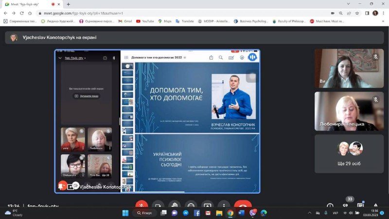 В’ячеслав Конотопчик, психолог, психотерапевт, травматерапевт, член Української Спілки Психотерапевтів (УСП) з точки зору практика розповів про «Допомогу тим, хто допомагає»; Стадільна Яна, магістрантка ОП «Психологія» Прикарпатського національного університету імені Василя Стефаника ознайомила з дослідженням на тему «Військова окупація: психологічні особливості переживання травматичного досвіду».