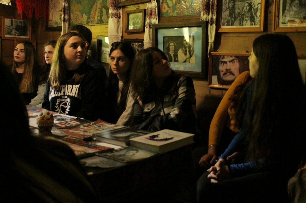 Наступна музейна локація, яку відвідали студенти – хата-музей кінофільму «Тіні забутих предків», який був відкритий у будинку, де проживав головний режисер цього фільму Сергій Параджанов. Екскурсовод Мокан Галина Іванівна у традиційній їй манері з використанням колоритного гуцульського діалекту розповіла про те як проходили зйомки фільму у селі (зйомки акторів Івана Миколайчука, Лариси Кадочникової, Тетяни Бестаєвої, Спартака Багашвілі та ін.), напружені відносини оператора Юрія Іллєнка із Сергієм Параджановим, місцеве кохання режисера. Також, окремі студенти змогли одягнути автентичний гуцульський одяг і відчути дух тієї епохи.
