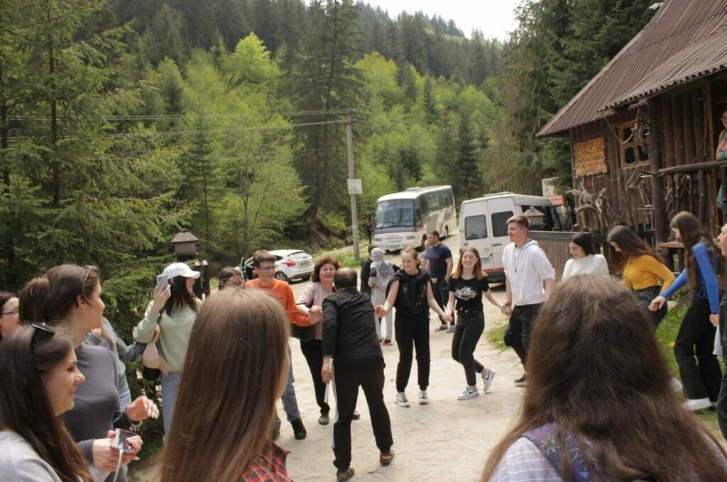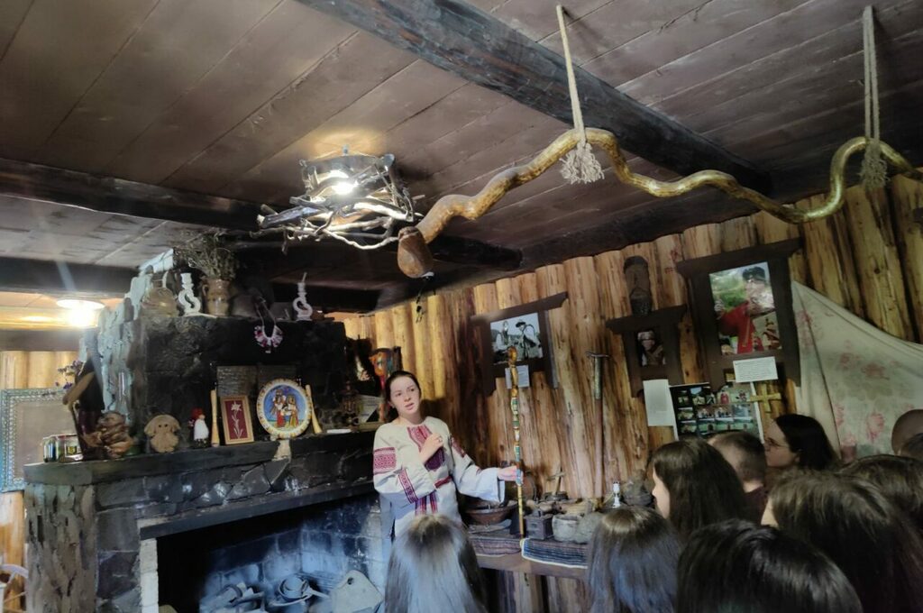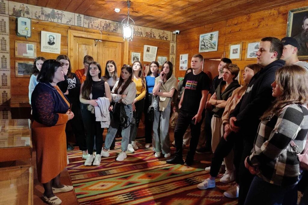 Опісля, всі дружньо відправилися до с. Криворівні – ще однієї перлини Гуцульщини, яку фольклорист Володимир Гнатюк назвав – «Українськими Афінами». Тут студенти відвідали дві локації – літературно-меморіальний музей Івана Франка і музей «Хата-гражда» гуцульської господарки родини Харуків.