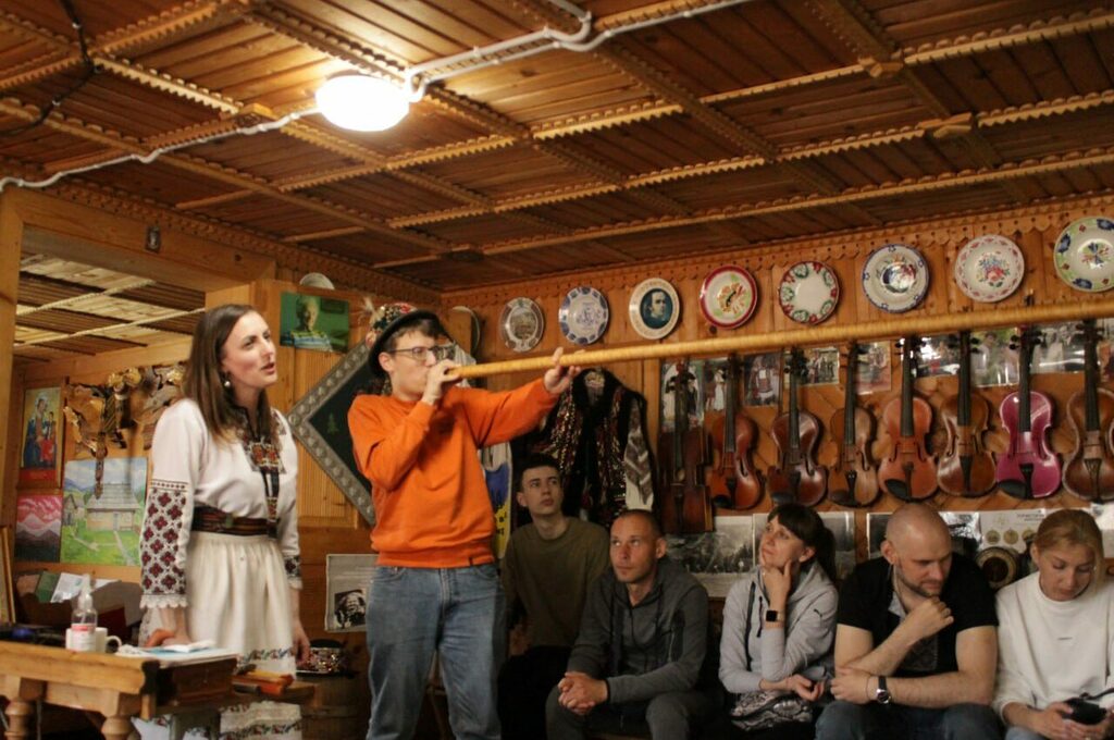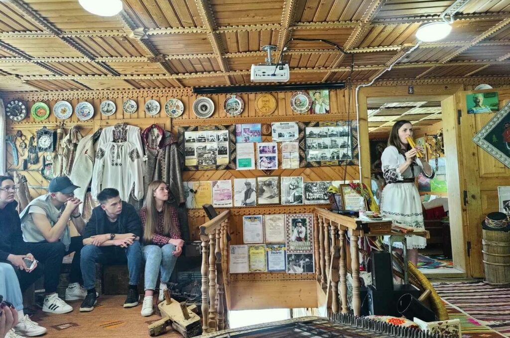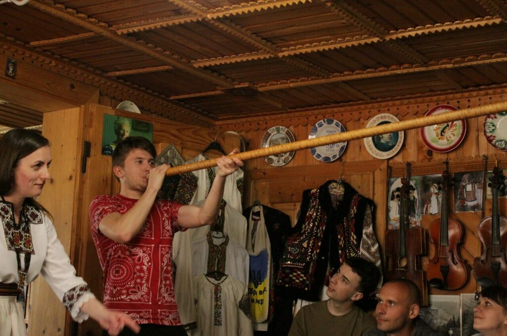 Після короткого відпочинку студенти відвідали Музей гуцульського побуту, етнографії та музичних інструментів Романа Кумлика. Екскурсію проводила дочка засновника музею – Наталія Гузяк. Особливість екскурсії в тому, що вона проводилася на гуцульській говірці. Пані Наталія люб’язно продемонструвала майстерність гри на різних інструментах. До речі, Роман Кумлик був самоучкою, який грав на понад 30 інструментах, а його донька на близько 20. Зустріч відбулася у приємній домашній атмосфері.